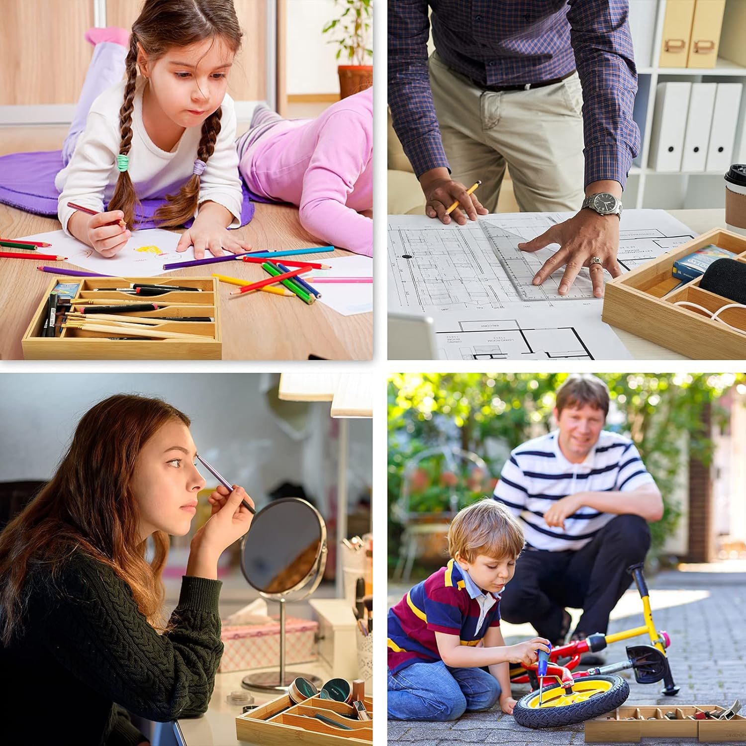 대나무 홈 마감 보관 상자 서랍 식기 주방용품 마감 보관 상자 문구 화장품 상자 정렬 상자