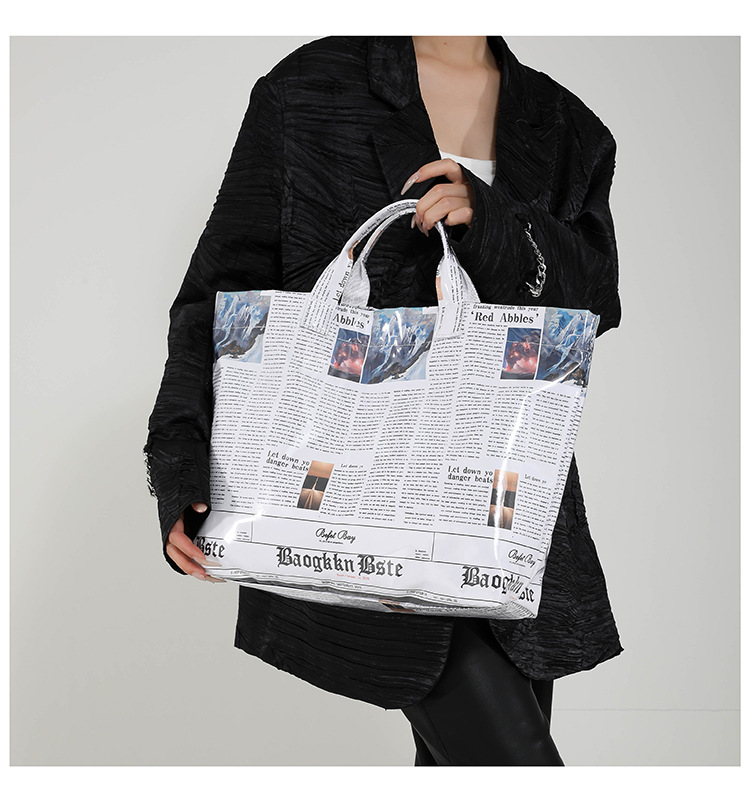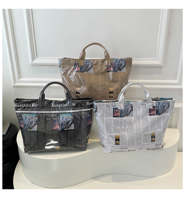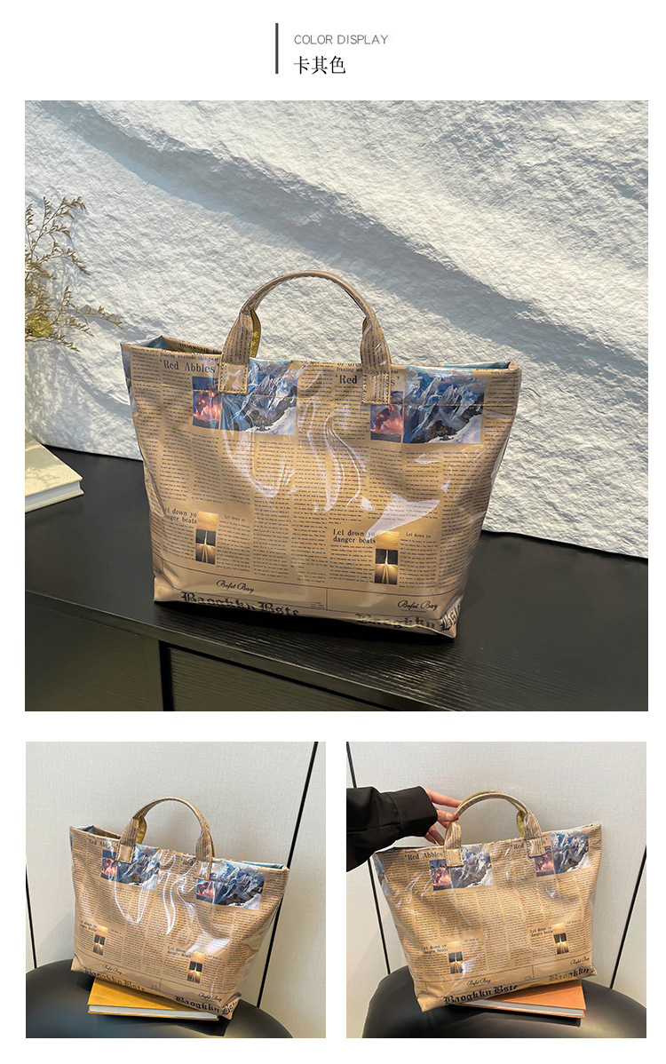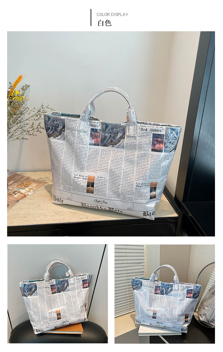 2025 대용량 신문 프린트 백 신상 한국 스타일 패션 트렌드 여성 캐주얼 핸드백 토트백 여성 가방