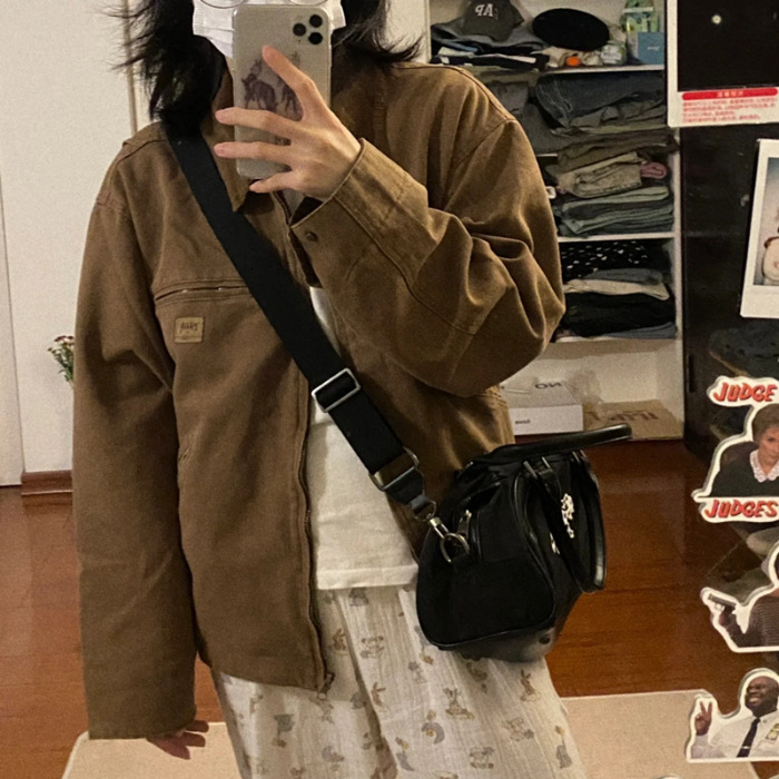 초가을 아메리칸 스타일 레트로 캐주얼 코트 여자 2024 새로운 도착 느슨한 야구 세트 재킷 바이커 세트스토어 가기