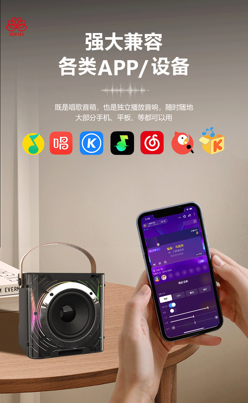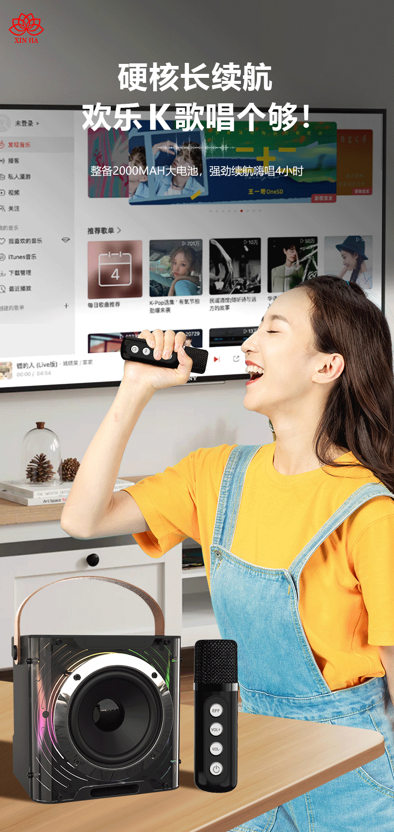 支持蓝牙连接手机,在全民K歌酷狗等唱歌;
