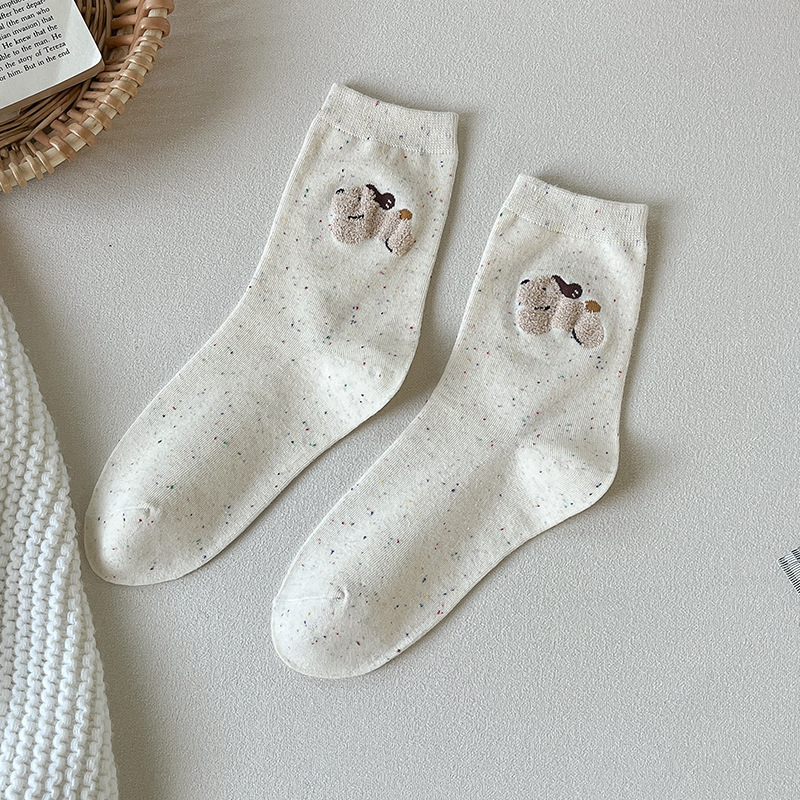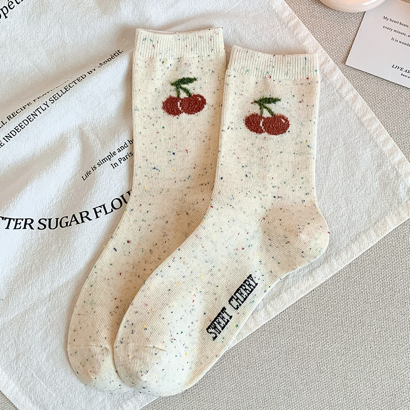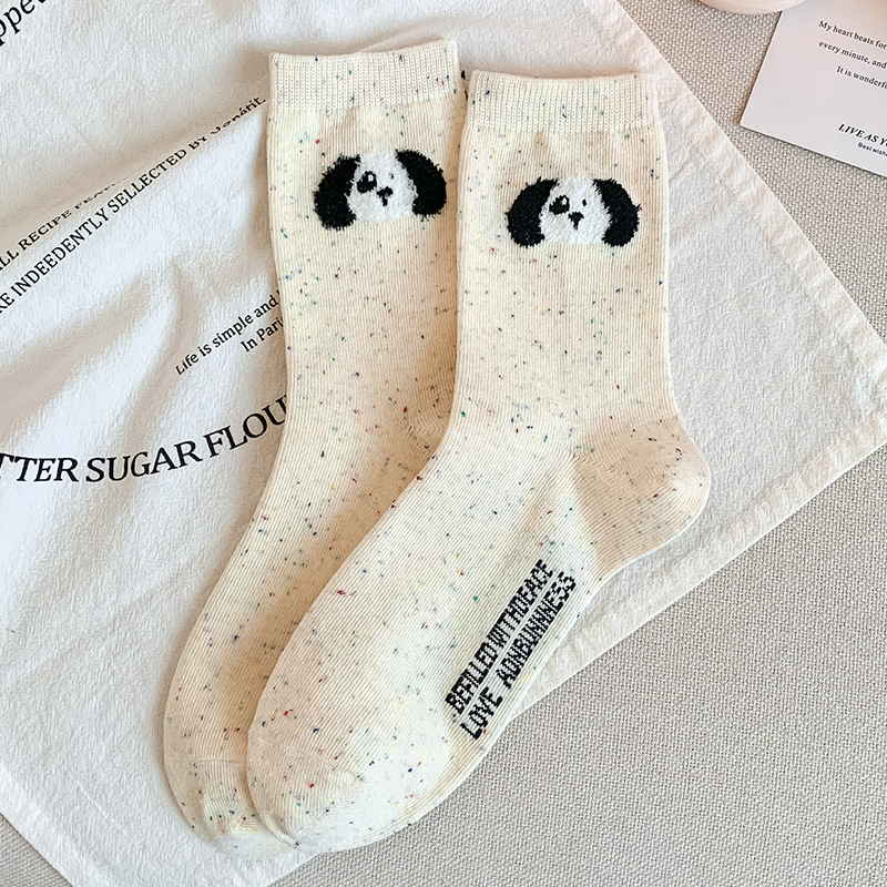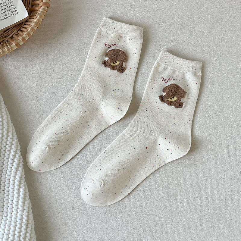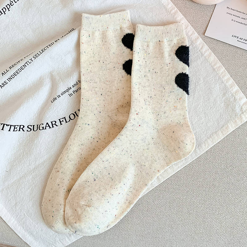 가을과 겨울 양말 여성의 중간 길이 양말 Ins 트렌디 한 퓨어 코튼 일본식 포인트 원사 만화 귀여운 신장 면화 학생 스타킹