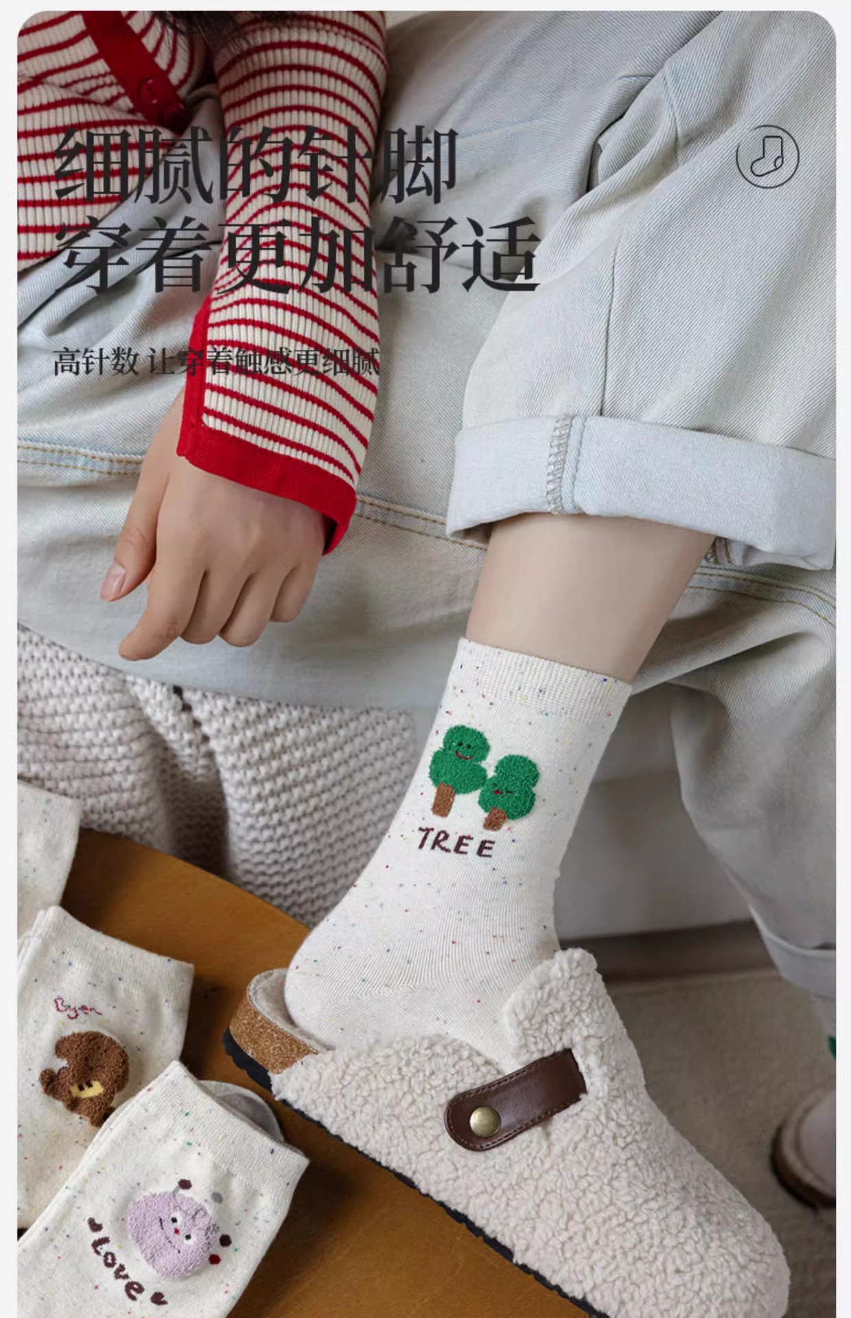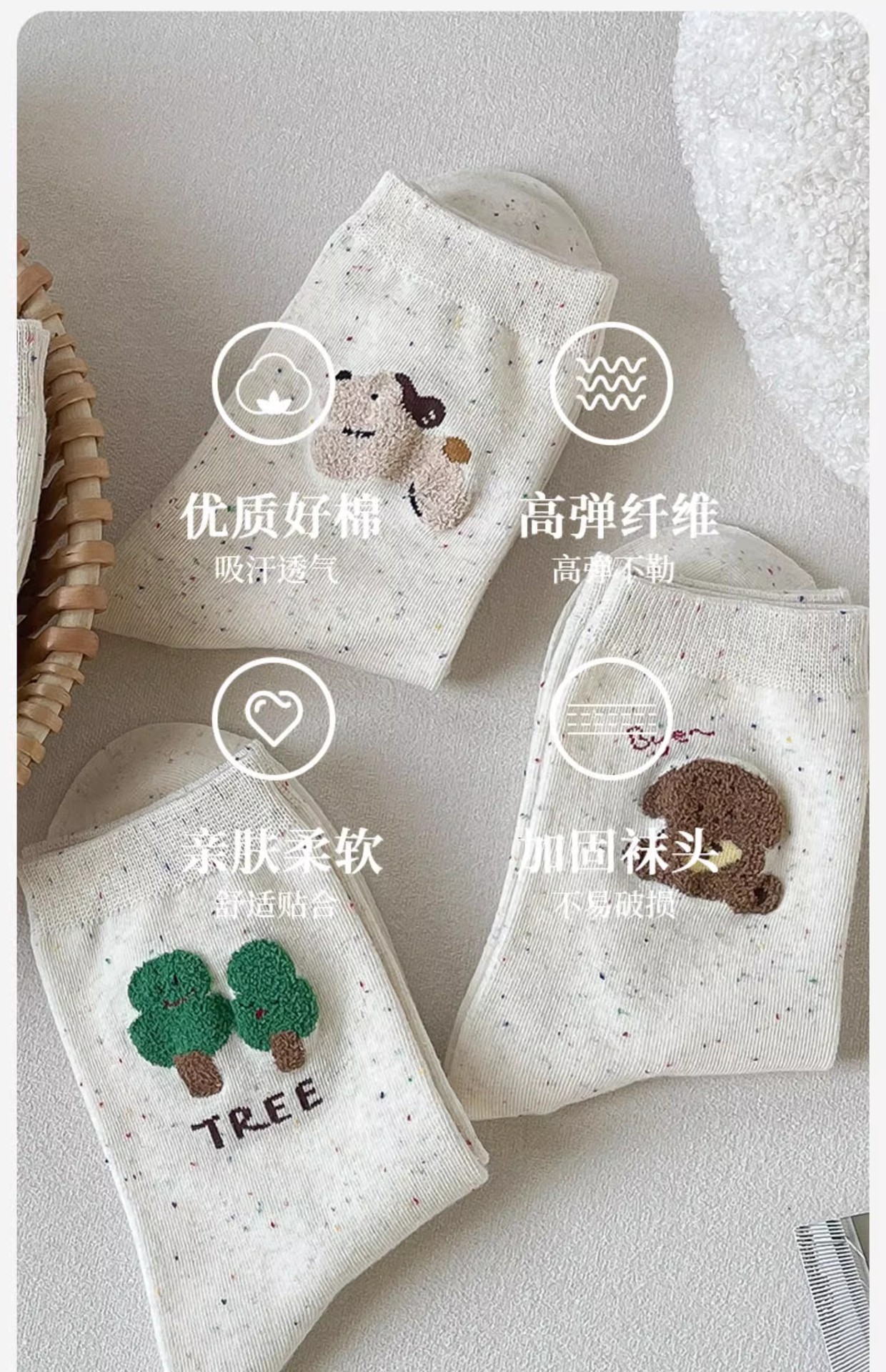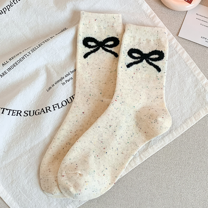 가을과 겨울 양말 여성의 중간 길이 양말 Ins 트렌디 한 퓨어 코튼 일본식 포인트 원사 만화 귀여운 신장 면화 학생 스타킹스토어 가기