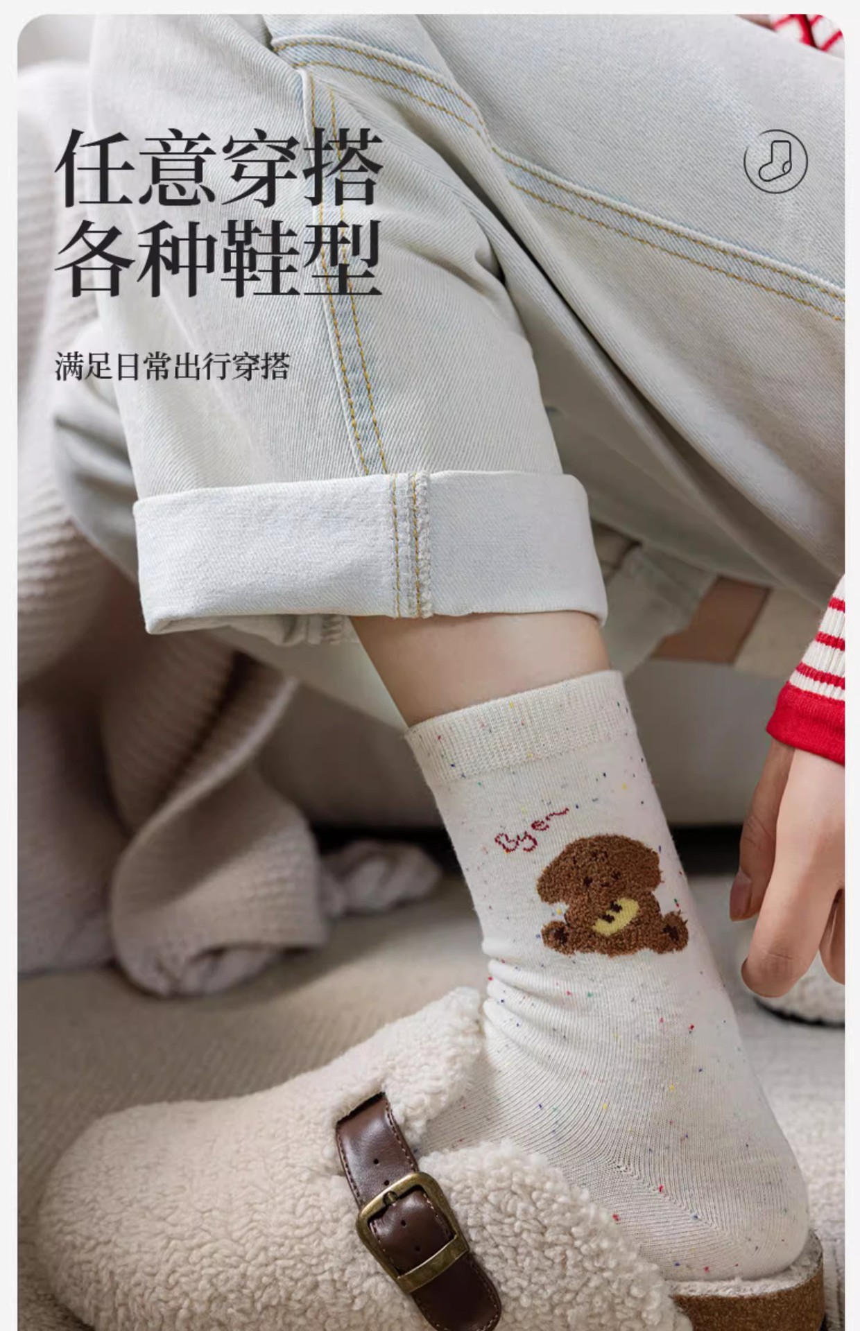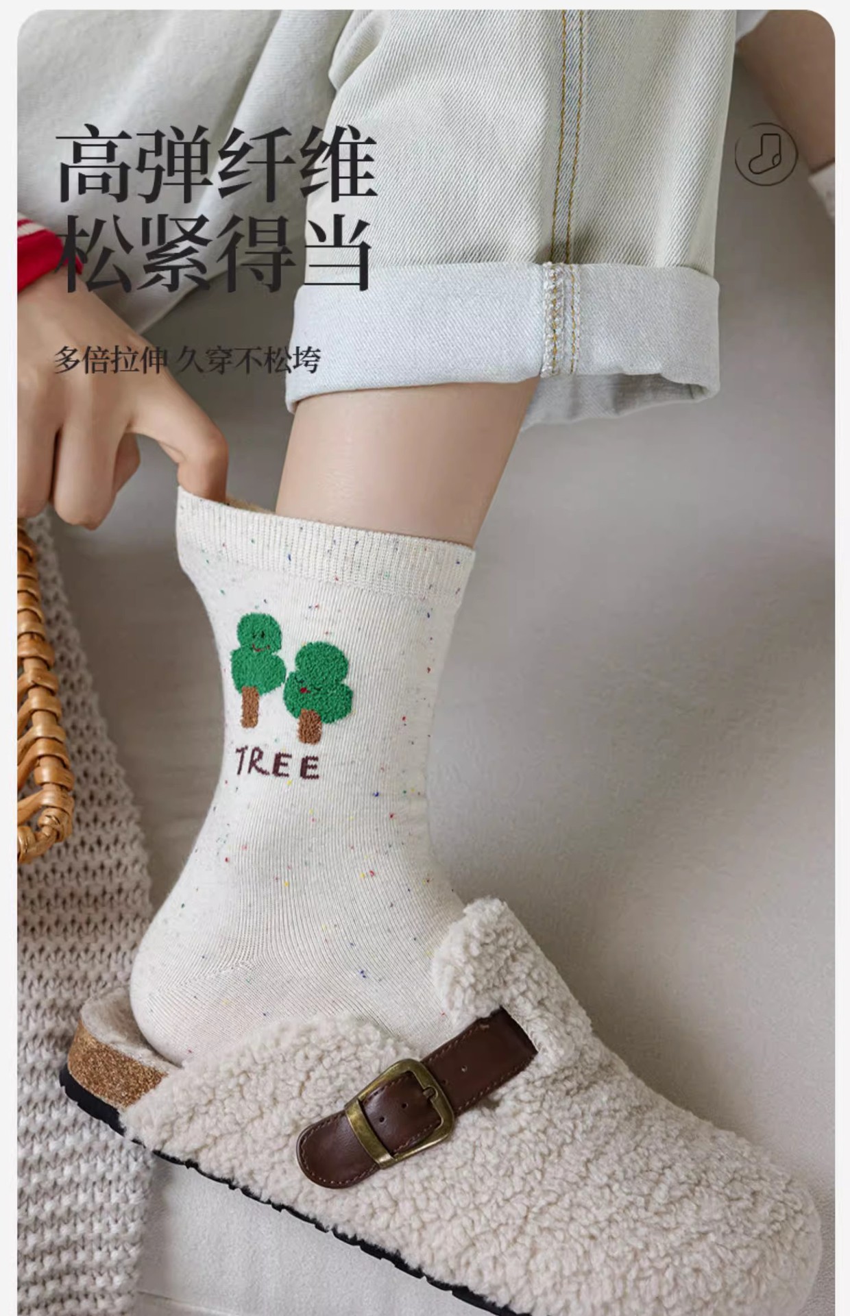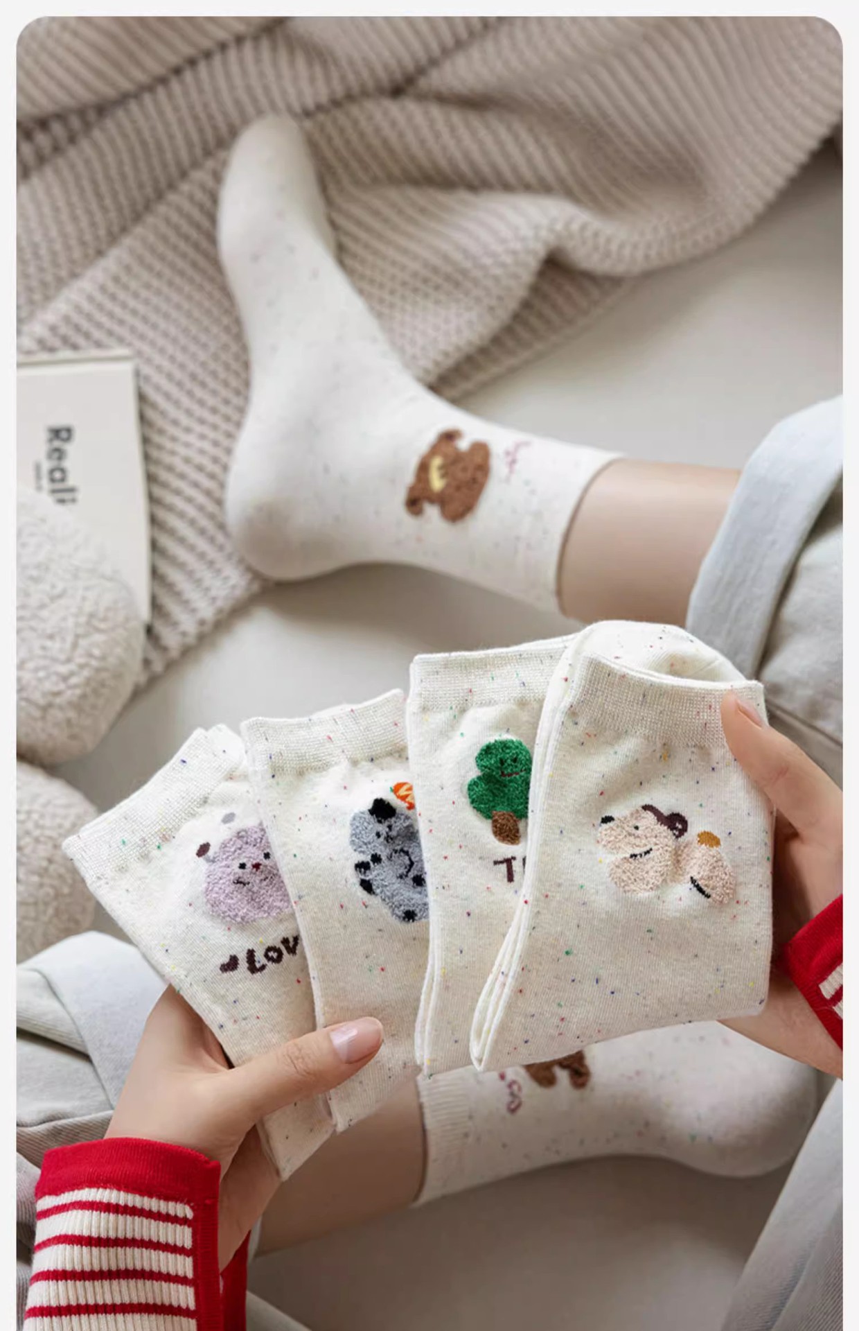 가을과 겨울 양말 여성의 중간 길이 양말 Ins 트렌디 한 퓨어 코튼 일본식 포인트 원사 만화 귀여운 신장 면화 학생 스타킹스토어 가기