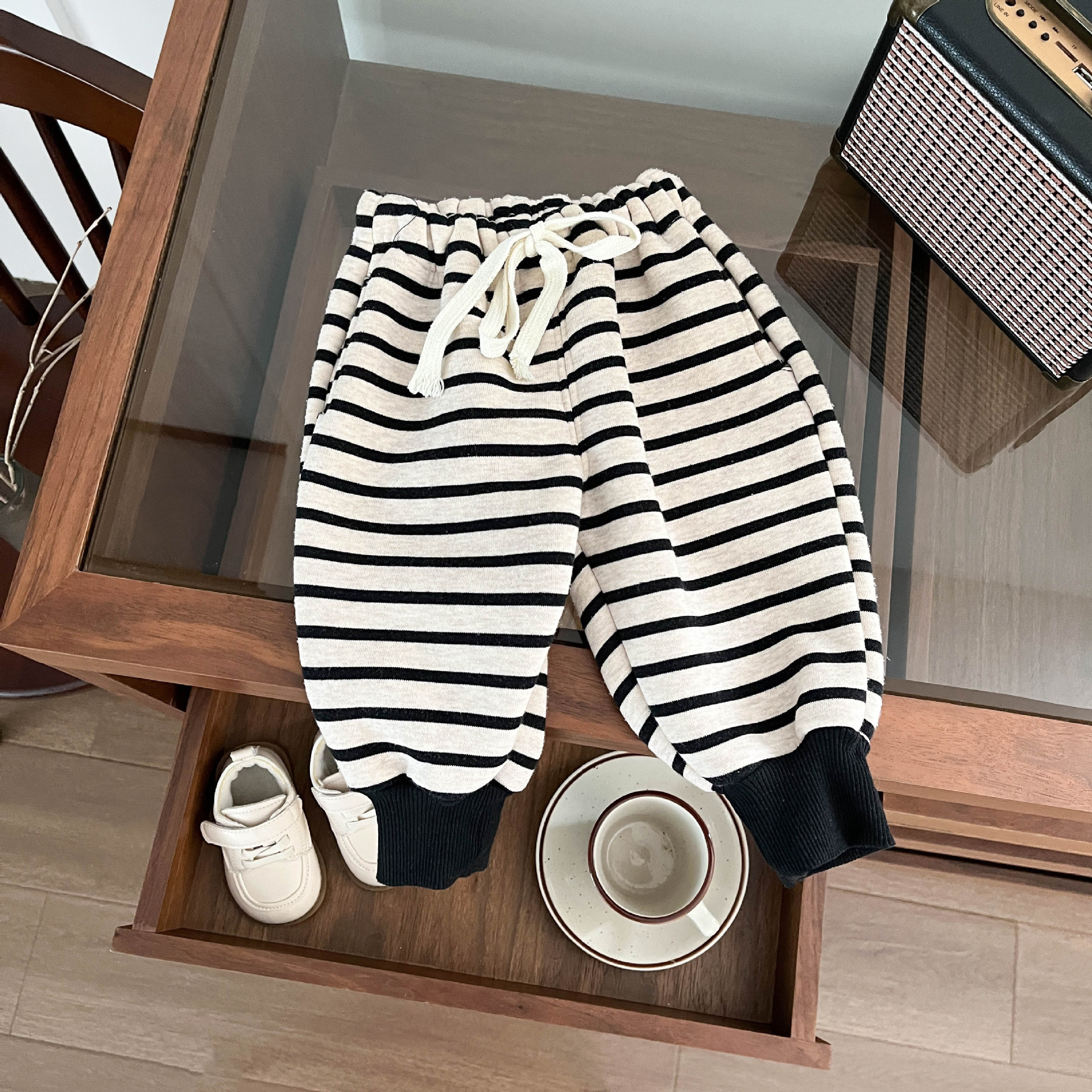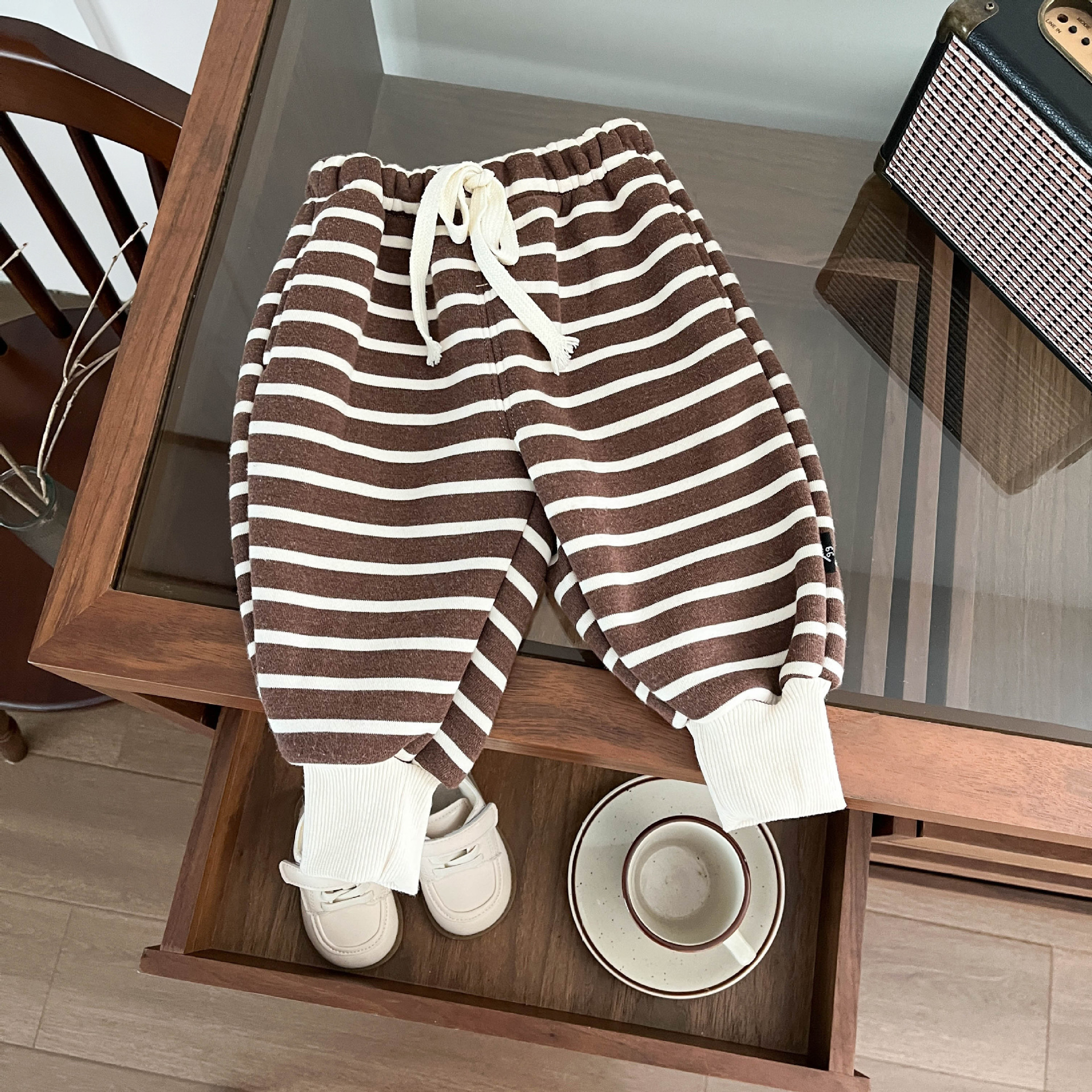 한국 스타일 아기 겨울 바지 서양식 줄무늬 어린이 기모 두꺼운 느슨한 캐주얼 바지 아기 따뜻한 발목 바지