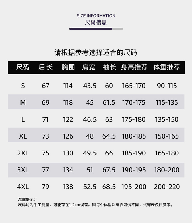 • 4XL은 100-110kg 사이즈에 맞습니다