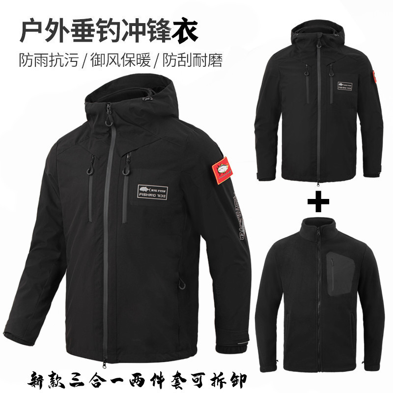 가을 겨울 낚시복, 재킷, 벨벳, 발수, 보온복, 아웃도어 스포츠 낚시복, 쓰리인원