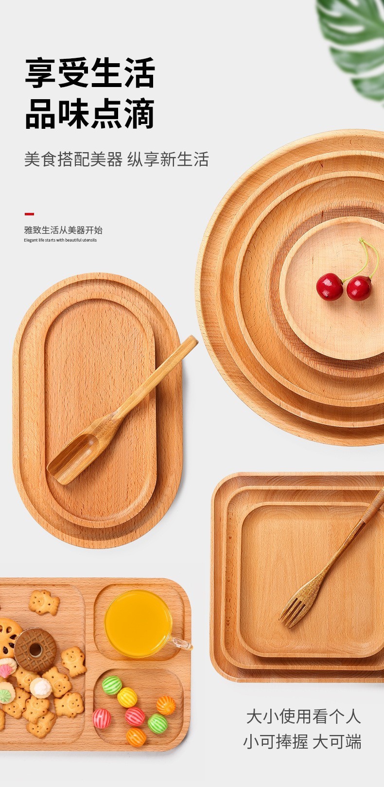 너도밤 나무 나무 트레이 디너 플레이트 티 트레이 가정용 컵 플레이트 스테이크 커피 플레이트 직사각형 접시 빵 과일 플레이트