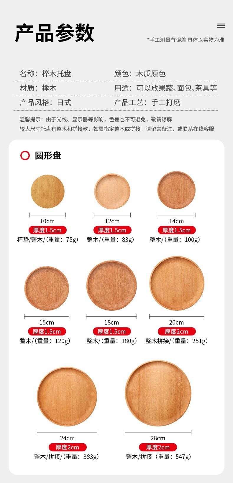 • 전체 목재/접합 바니시 28x28x2 원형