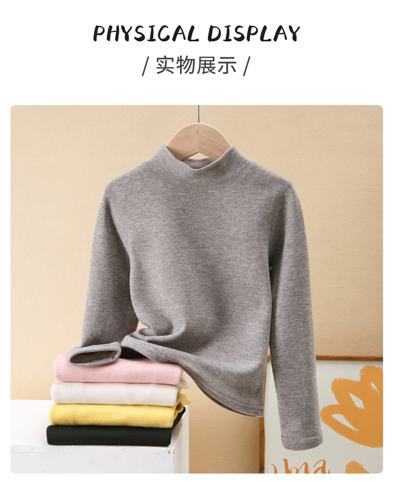 아동베이스 셔츠 단색 칼라 벨벳 따뜻한 옷 올매치 긴소매 티셔츠 반 하이 칼라 아동복 소년 소녀스토어 가기