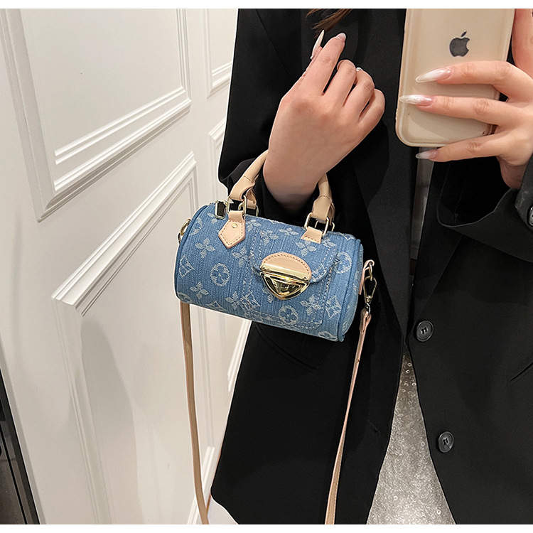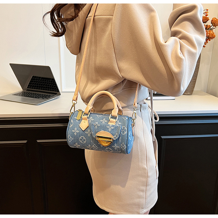 높은 가치의 폭발성 레트로 데님 블루 보스턴 가방 미국 하이 엔드 어깨 크로스 바디 가방 국경 간 베개 가방스토어 가기