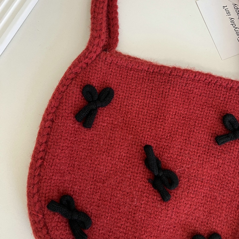 한국 스타일 주변 빨간 핸드백 여성의 가을과 겨울 새로운 도착 활 장식 니트 핸드 백 싱글 숄더 언더암 가방