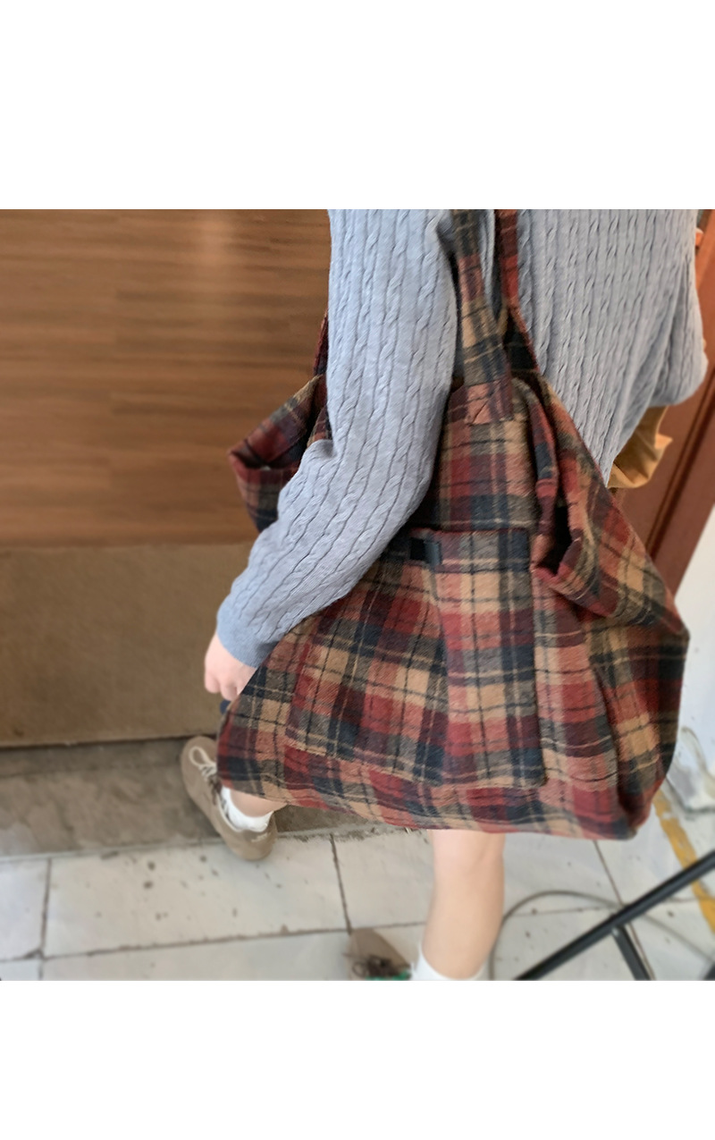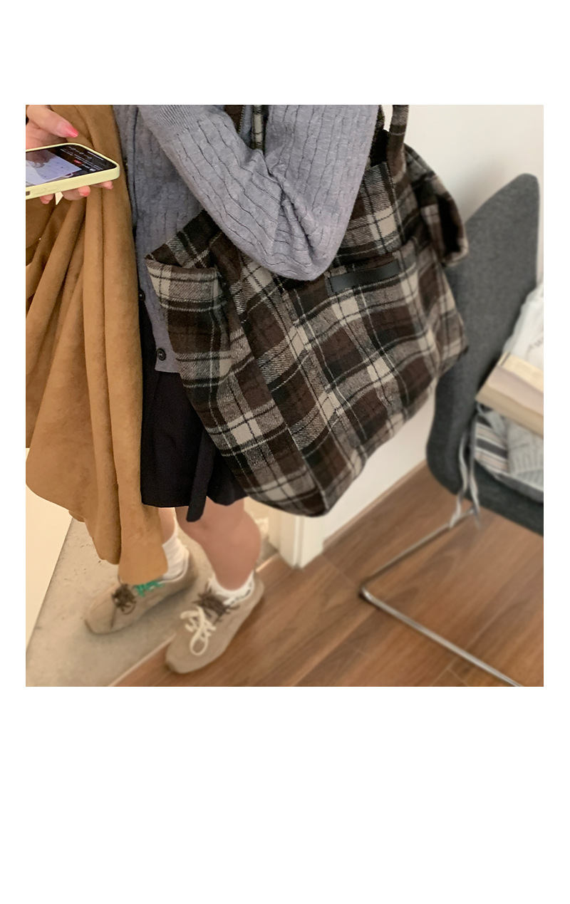 가을과 겨울 모직 격자 무늬 대형 가방 여성의 2024 새로운 한국 스타일 토트 백 대학 스타일 캐주얼 대용량 어깨 가방스토어 가기