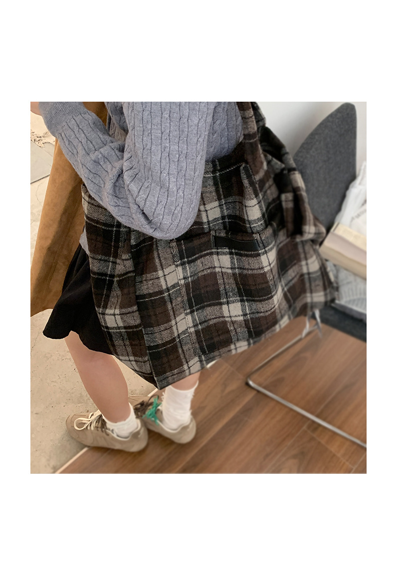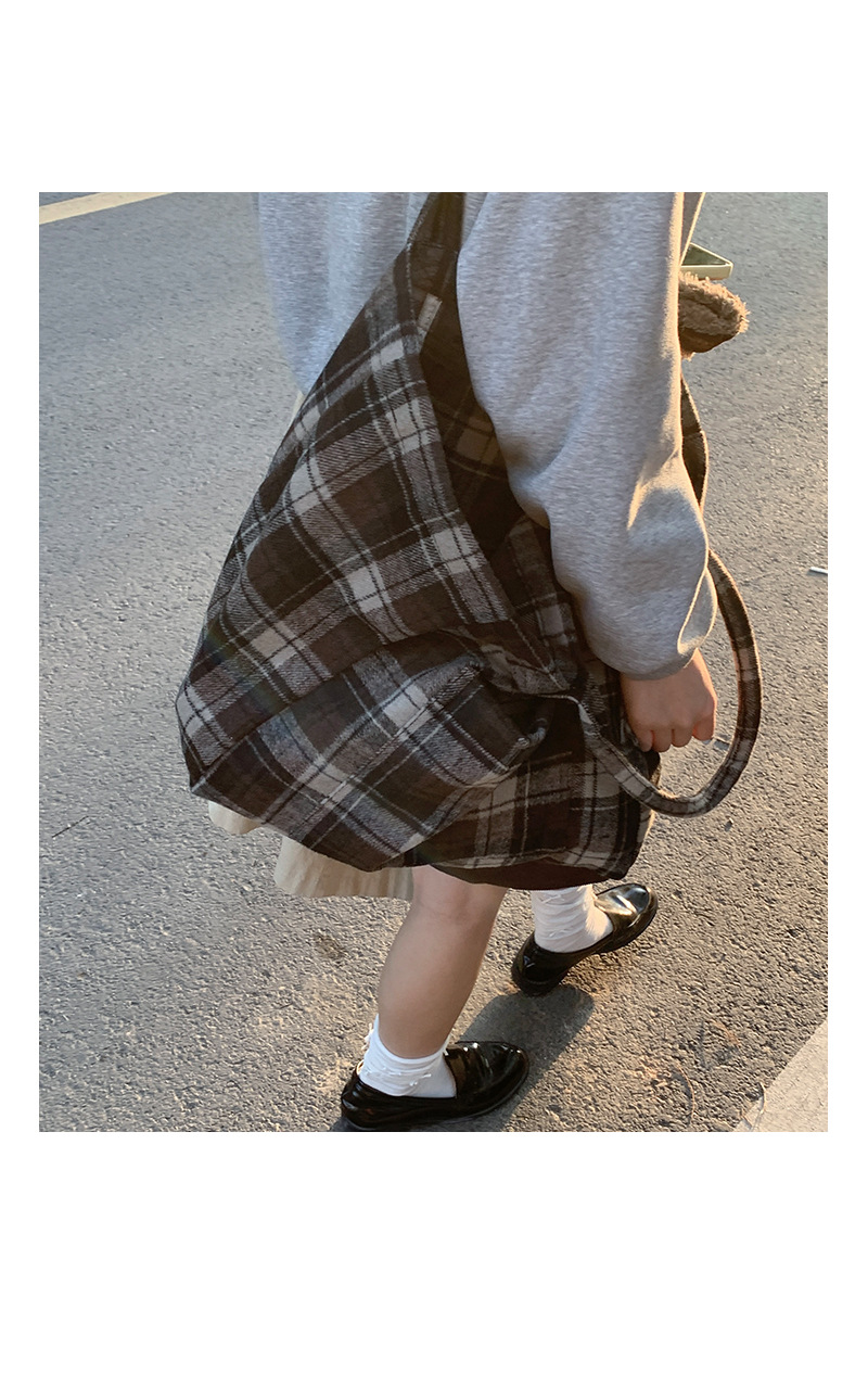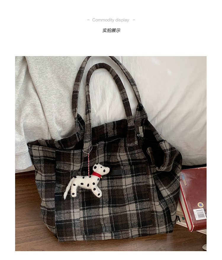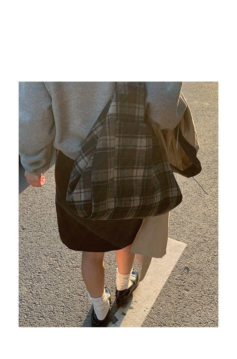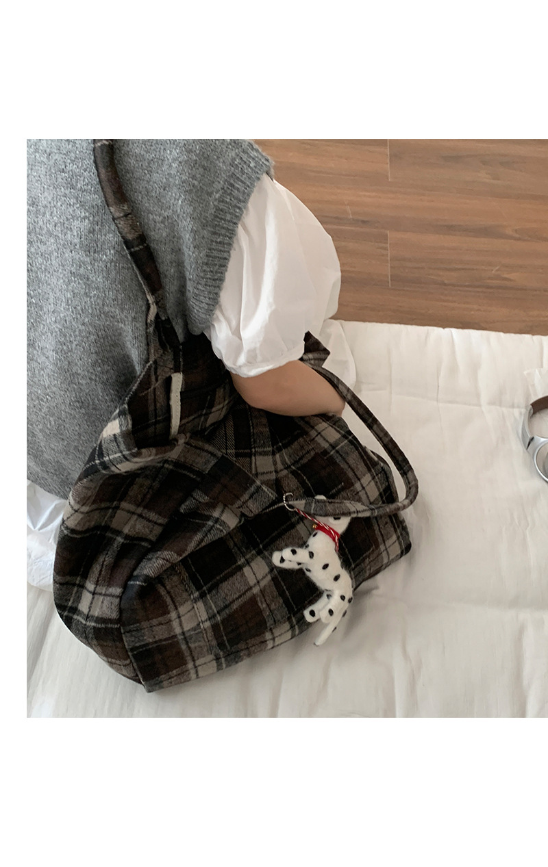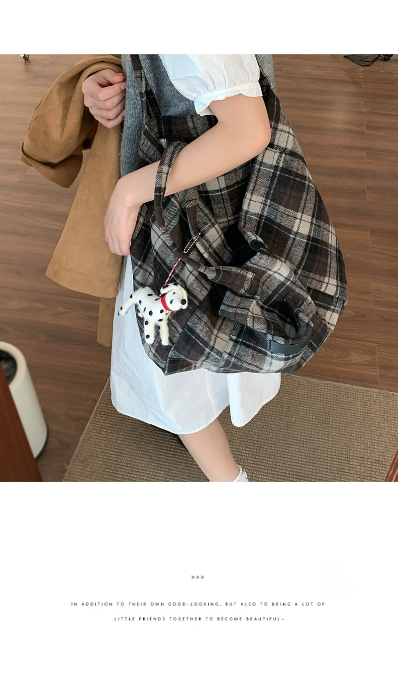가을과 겨울 모직 격자 무늬 대형 가방 여성의 2024 새로운 한국 스타일 토트 백 대학 스타일 캐주얼 대용량 어깨 가방