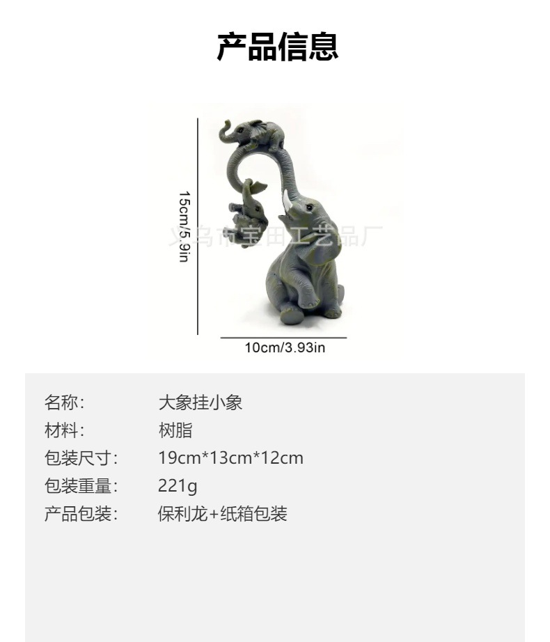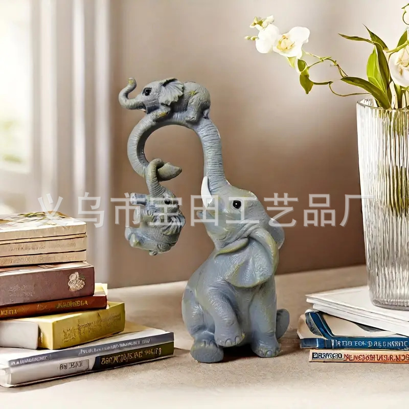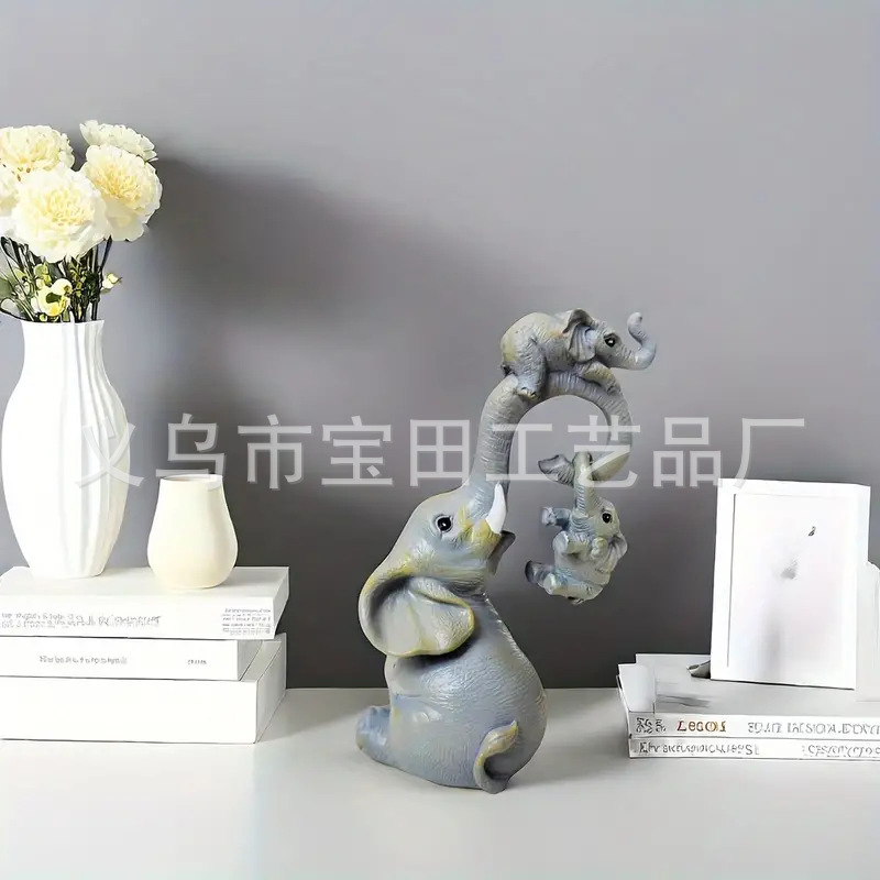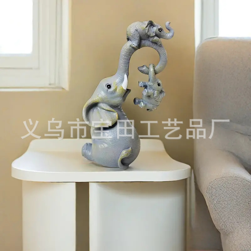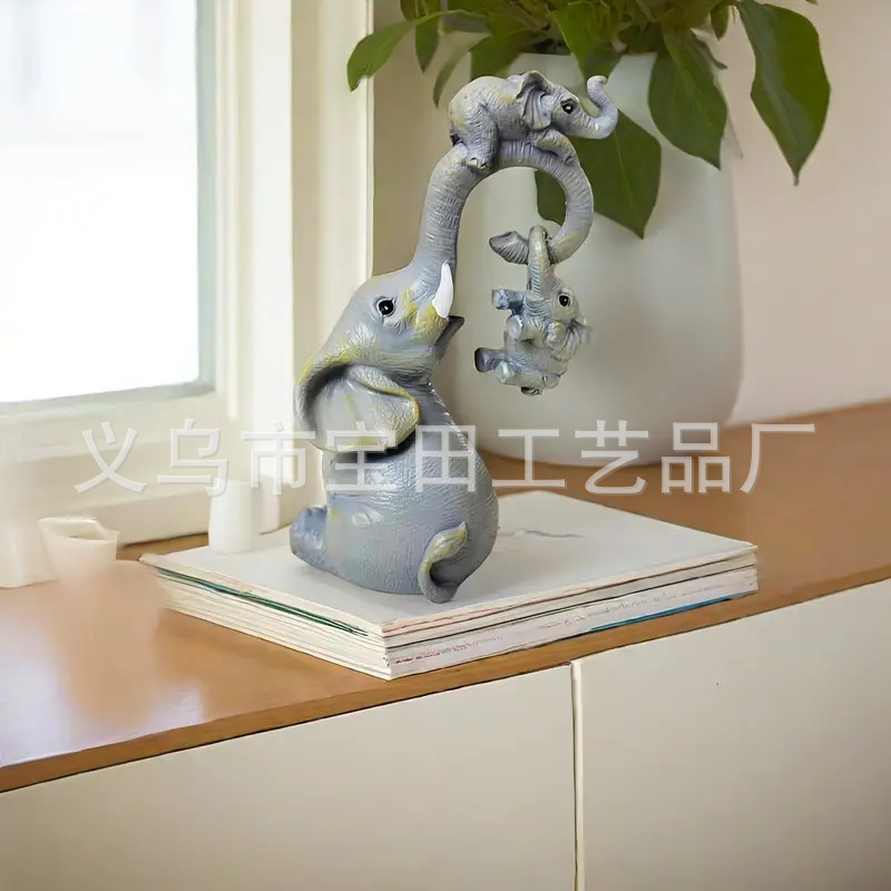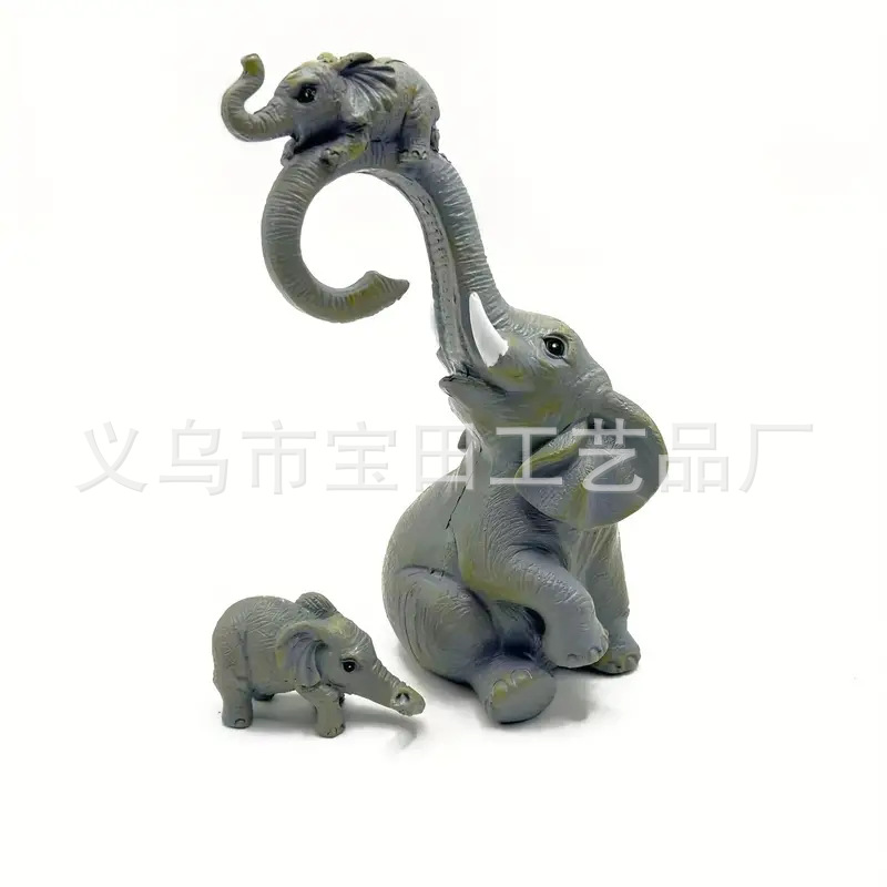 코끼리 가족 수지 동상 장식 홈 데스크탑 장식, 안뜰, 원예 장식 장식품