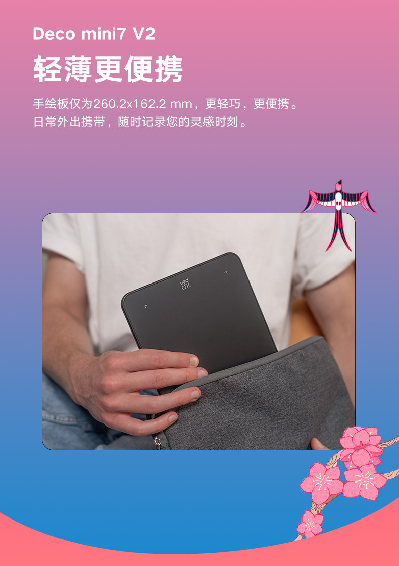 XPPen 태블릿 데코 미니 7 V2 손 드로잉 보드 컴퓨터 드로잉 보드 전자 필기 보드 드로잉 보드