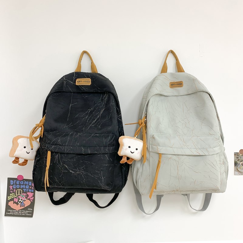 한국식 스쿨백 유행 배낭 학생 가방 대용량 주름 패턴 높은 컬러 값 통근 배낭스토어 가기