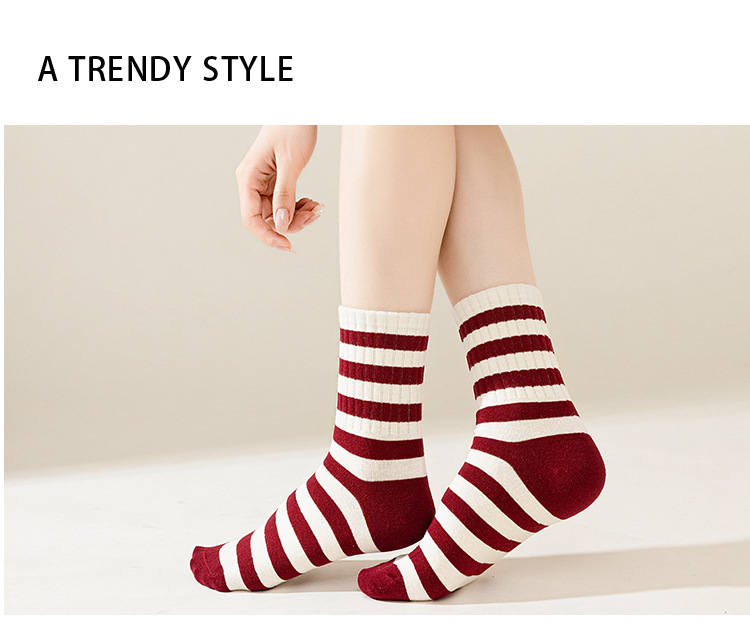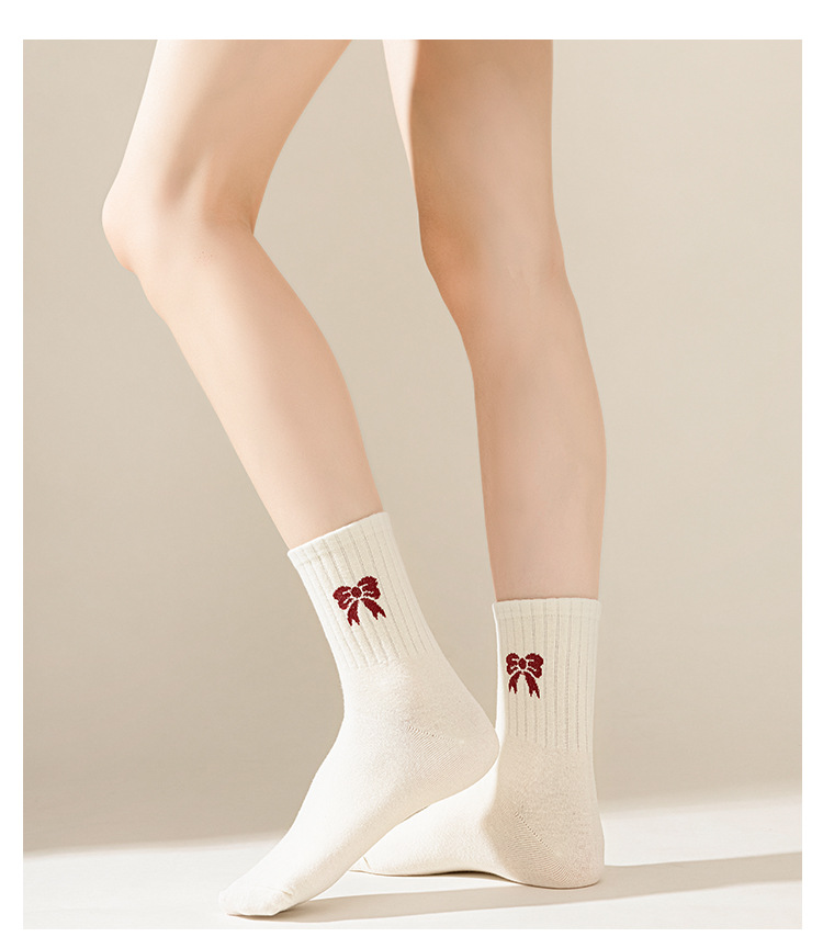가을과 겨울 새 양말 여자 일본식 안코라 레드 보우 미드 페어 양말 스트라이프 올매치 코튼 여자 양말 주지 양말스토어 가기