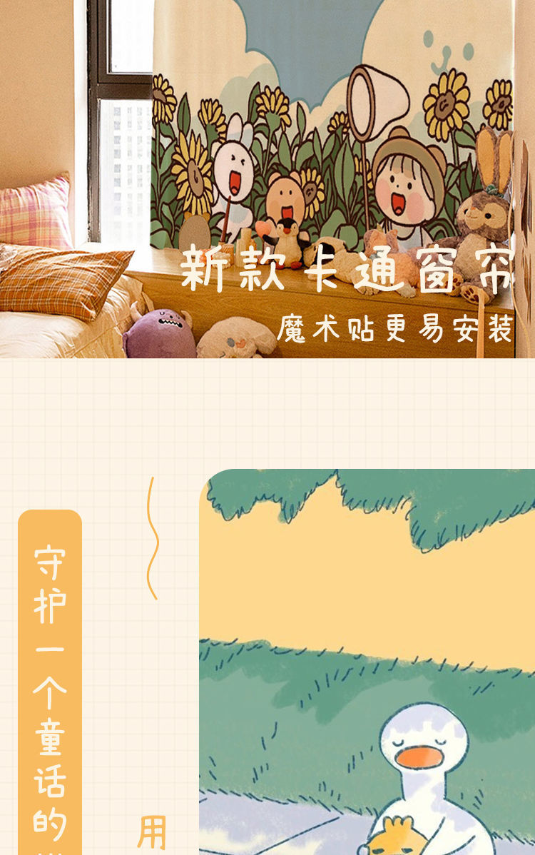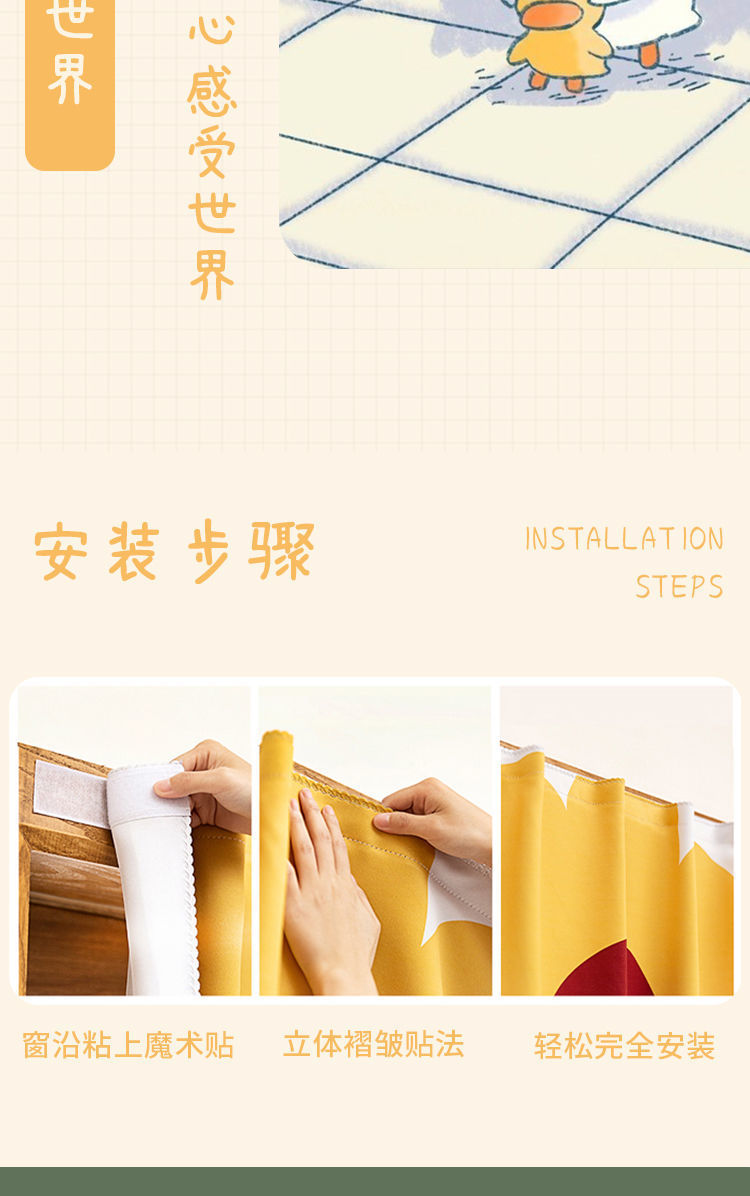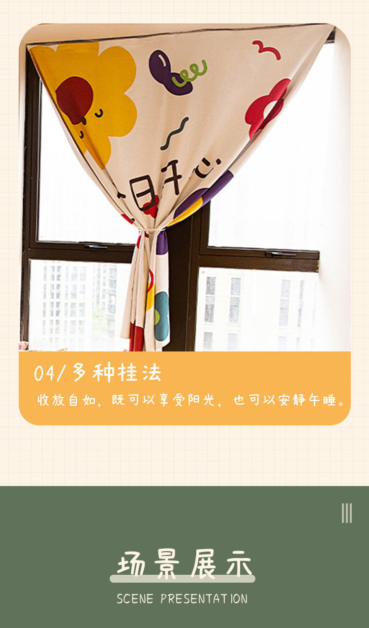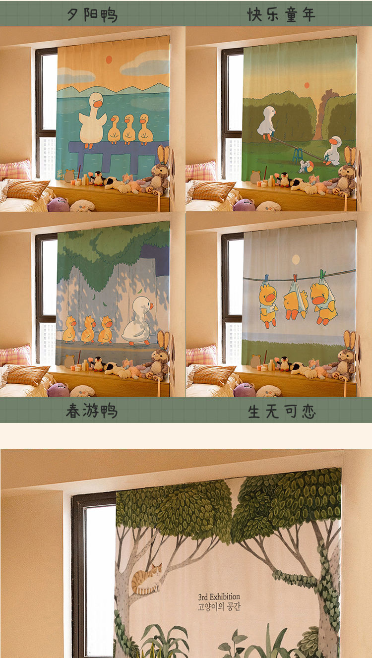 한국식 Ins 스타일 벨크로 커튼 원단 비 천공 짧은 커튼 작은 짧은 커튼 간단한 붙여 넣기 그늘 옷감스토어 가기