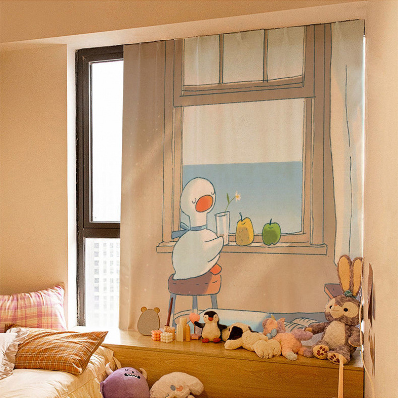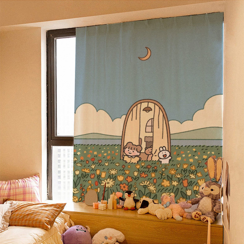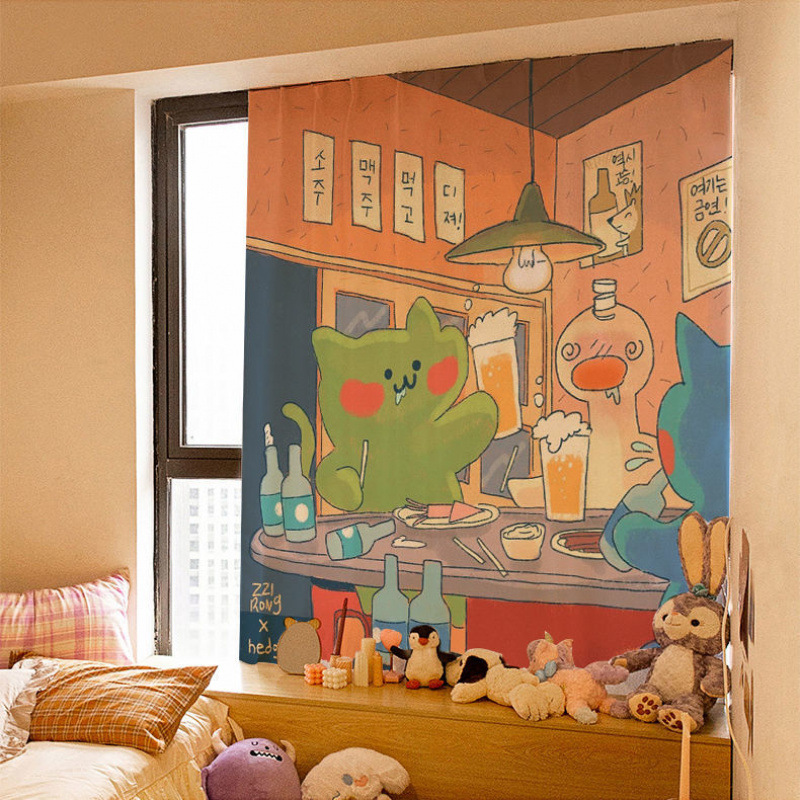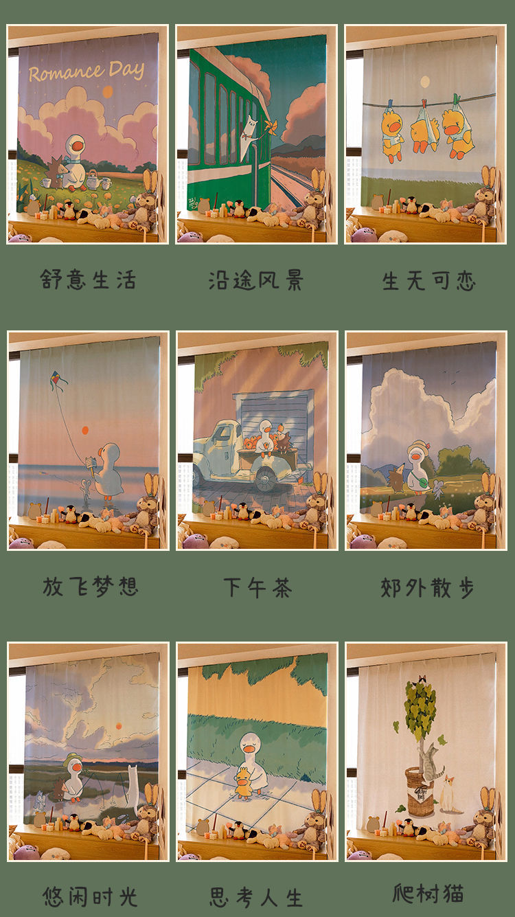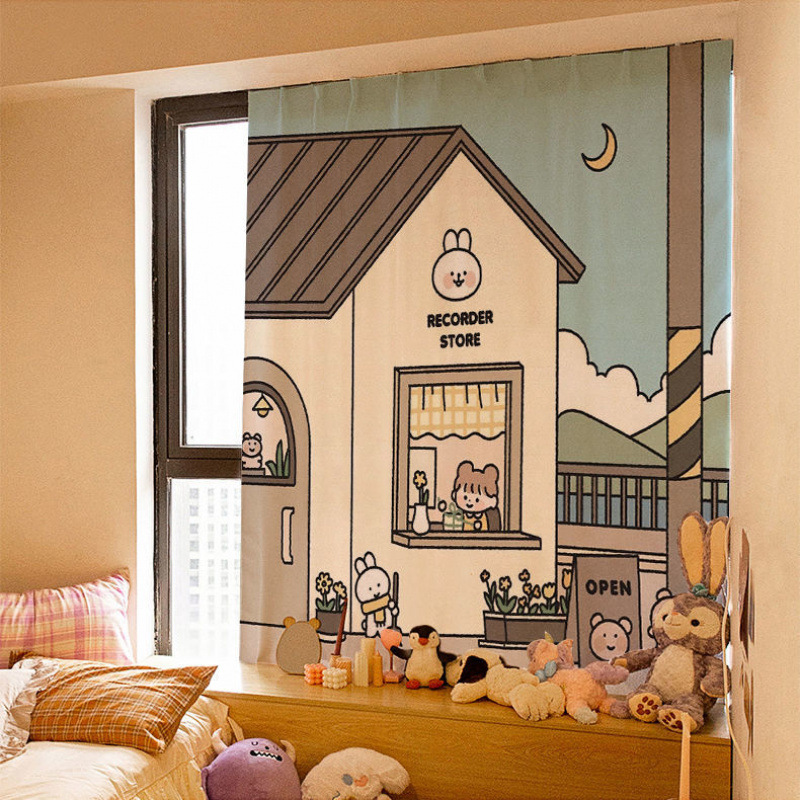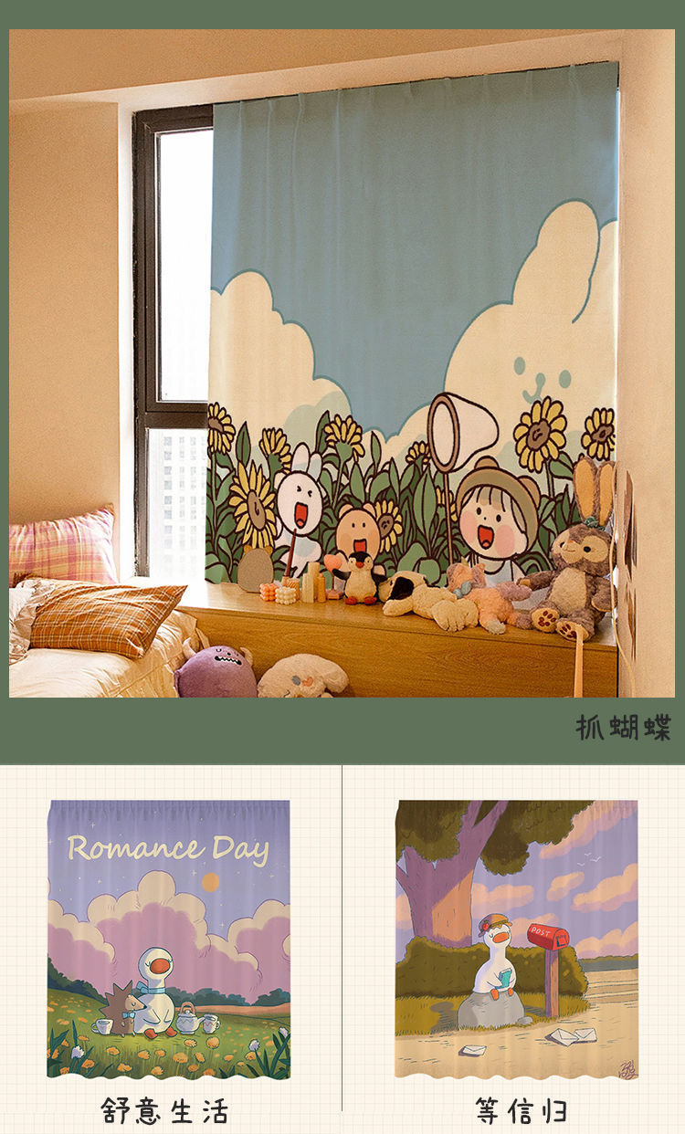 한국식 Ins 스타일 벨크로 커튼 원단 비 천공 짧은 커튼 작은 짧은 커튼 간단한 붙여 넣기 그늘 옷감스토어 가기