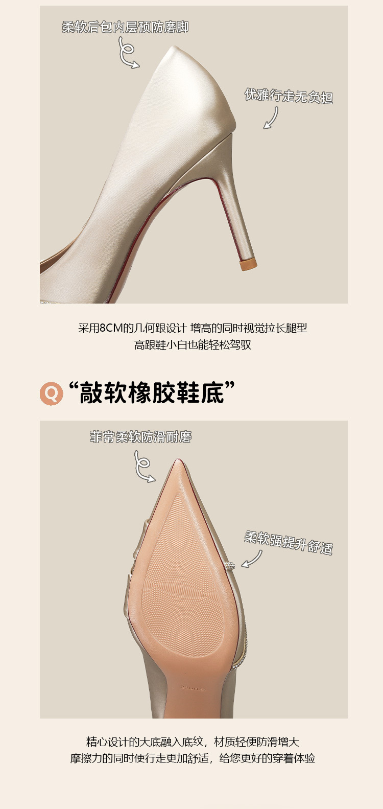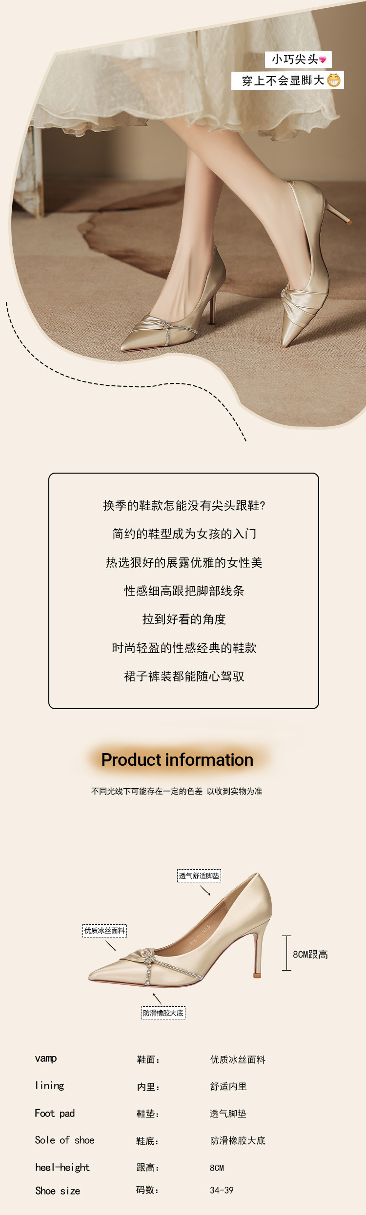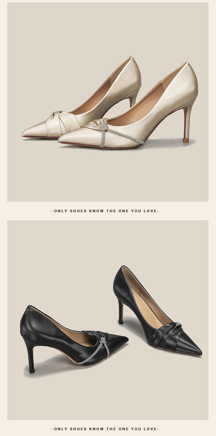 새틴 포인팅 하이힐 여성 하이 엔드 스타일 샤넬 스타일 가을과 겨울 새로운 연회 신발 신부 들러리 스틸레토 힐 샴페인 웨딩 슈즈