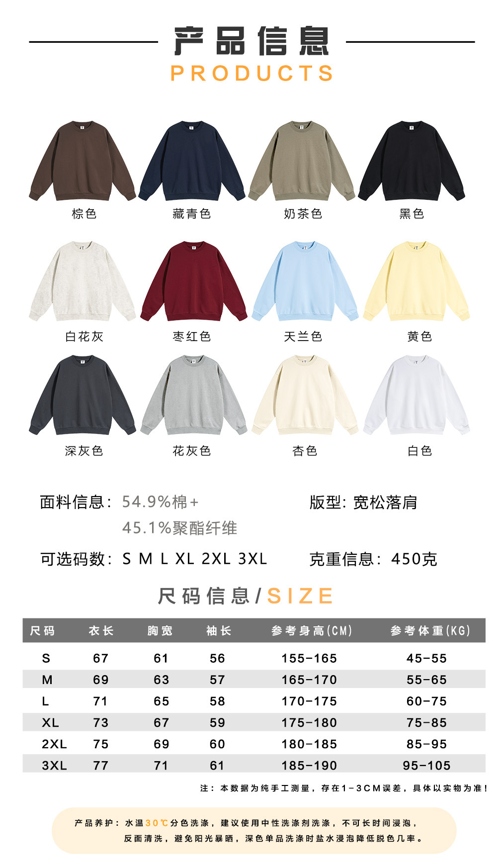 2025 가을 겨울 헤비웨이트 아메리칸 스타일 450G 테리 라운드넥 스웨트셔츠 도매 남성용 트렌디 브랜드 고품질 루즈핏 스포츠웨어