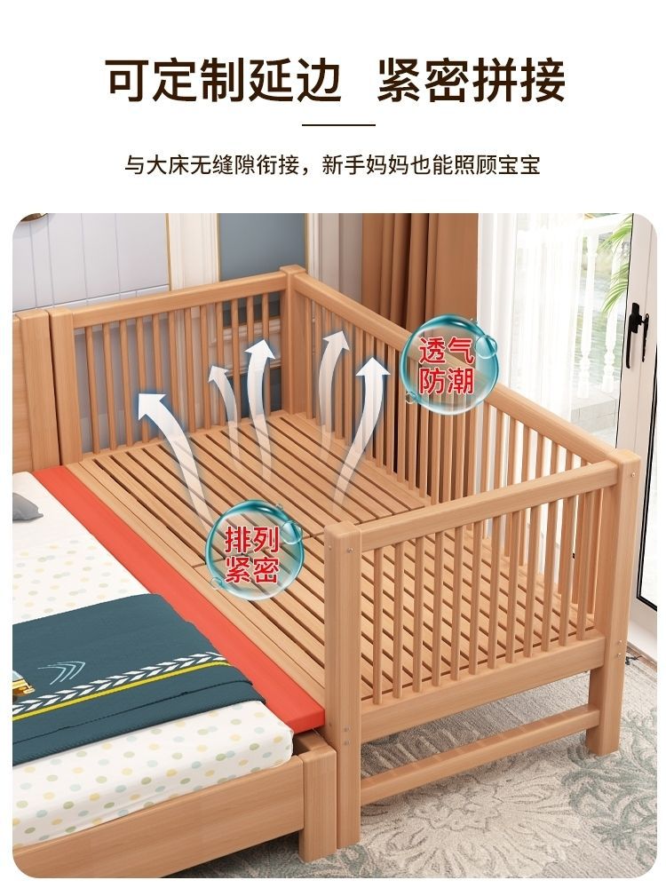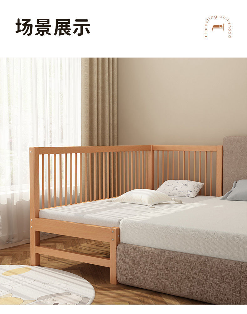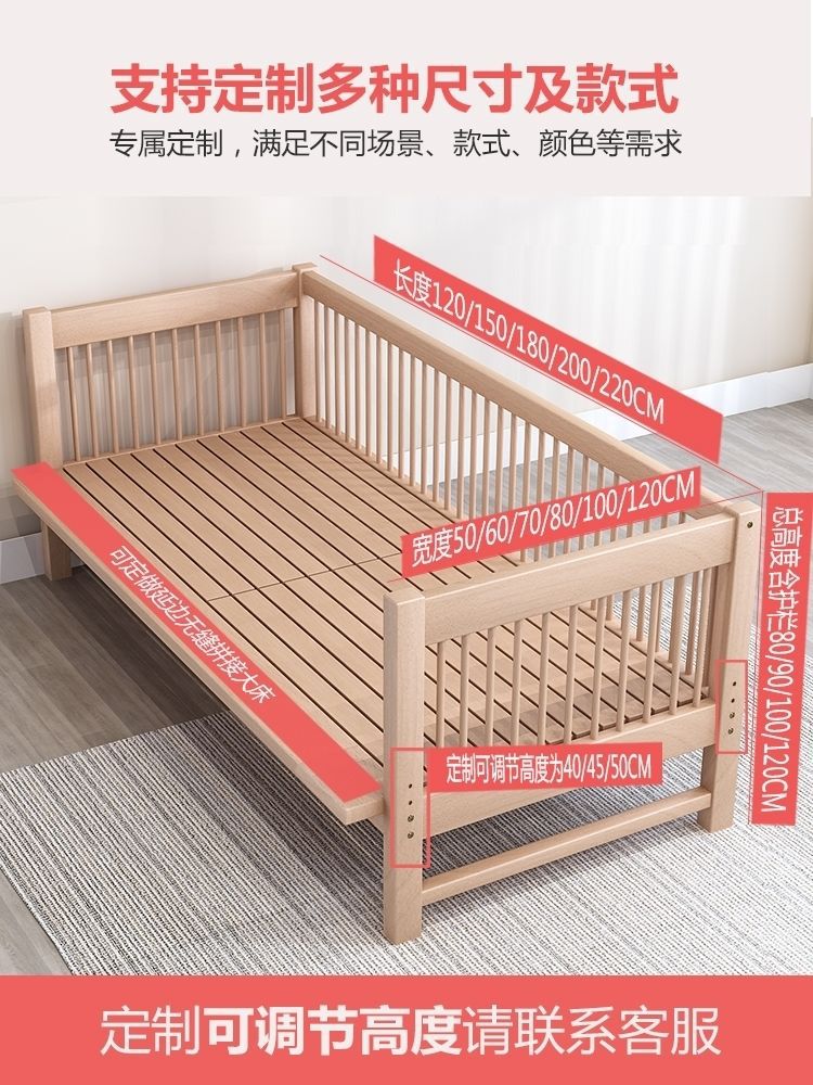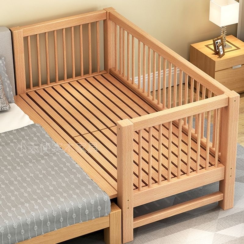 가드레일이 있는 너도밤나무 어린이 침대, 아기 싱글 침대, 소년 소녀 공주 침대, 대형 침대, 침대 옆에 접합된 침대
