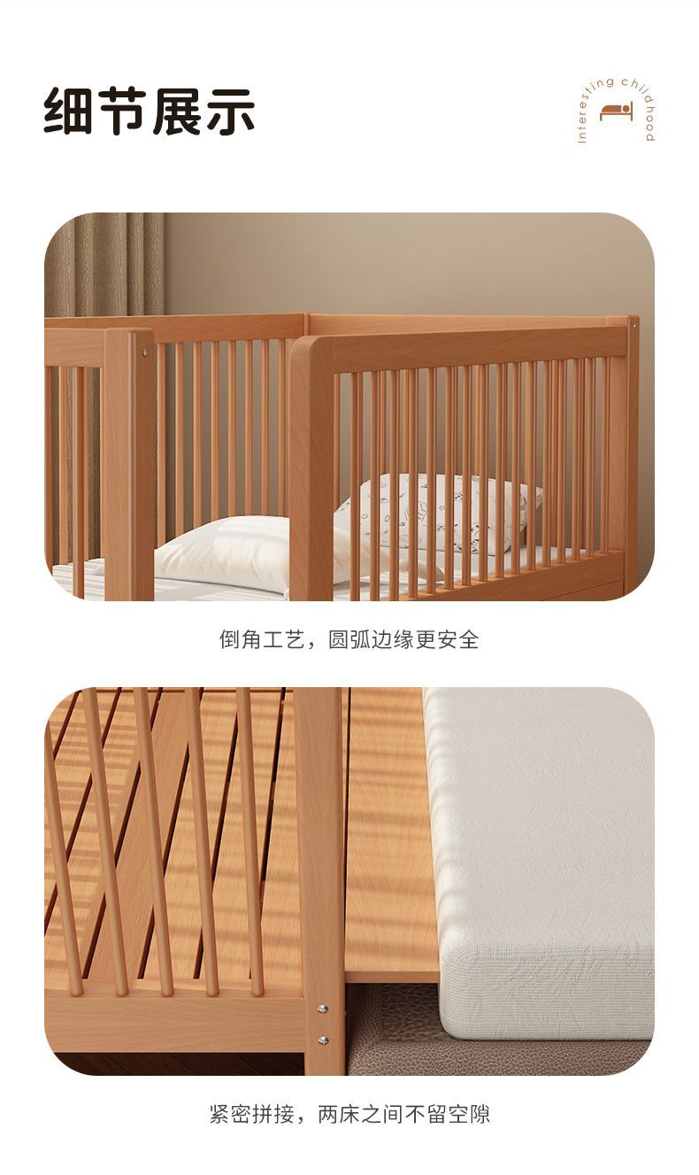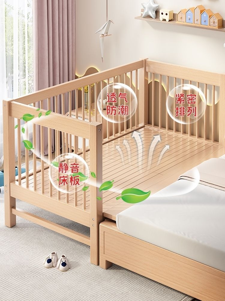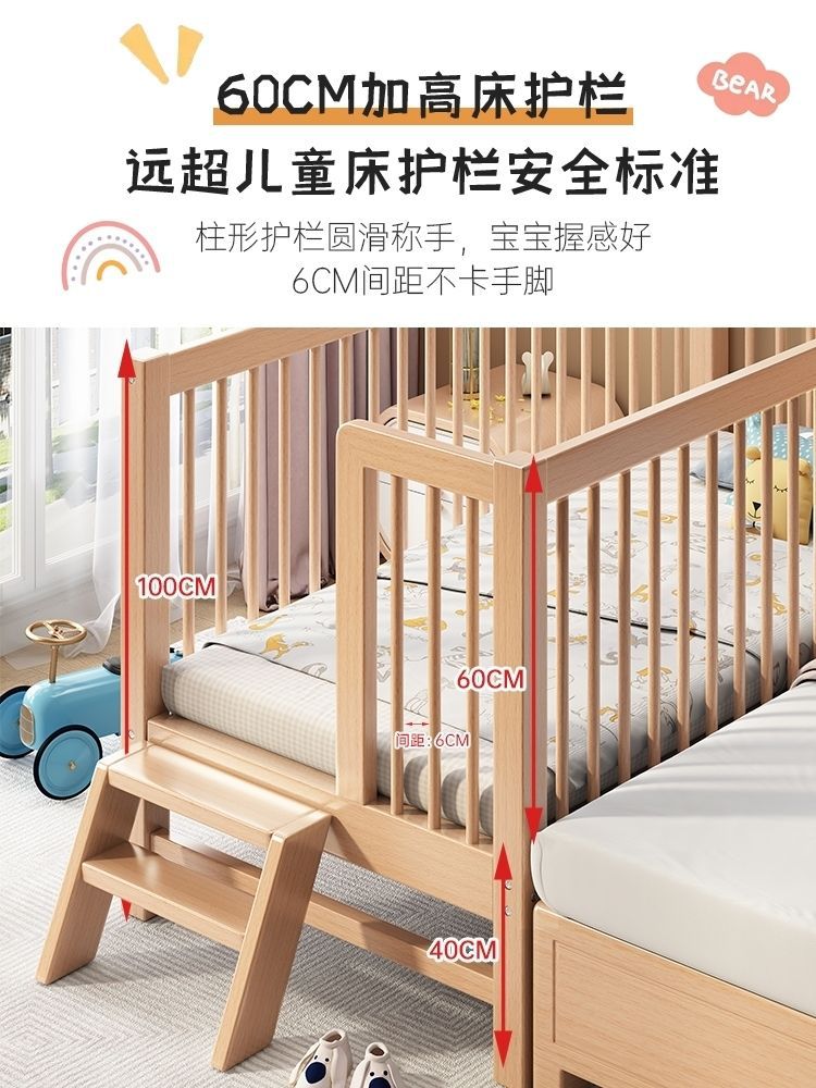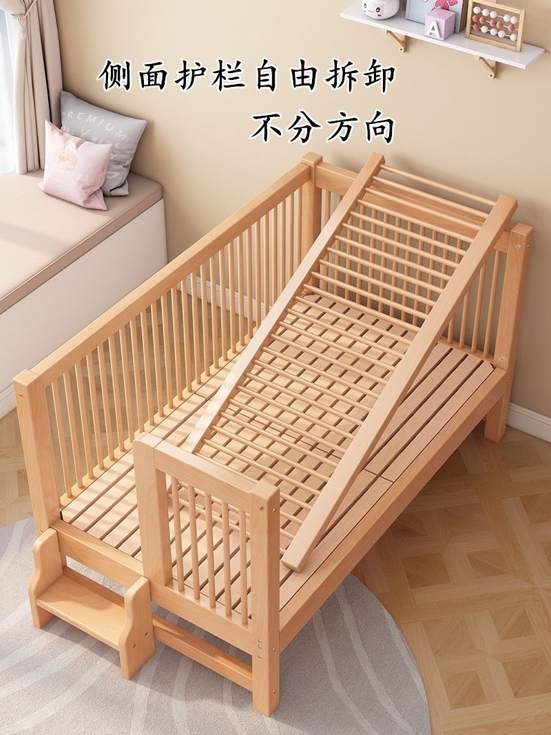 가드레일이 있는 너도밤나무 어린이 침대, 아기 싱글 침대, 소년 소녀 공주 침대, 대형 침대, 침대 옆에 접합된 침대