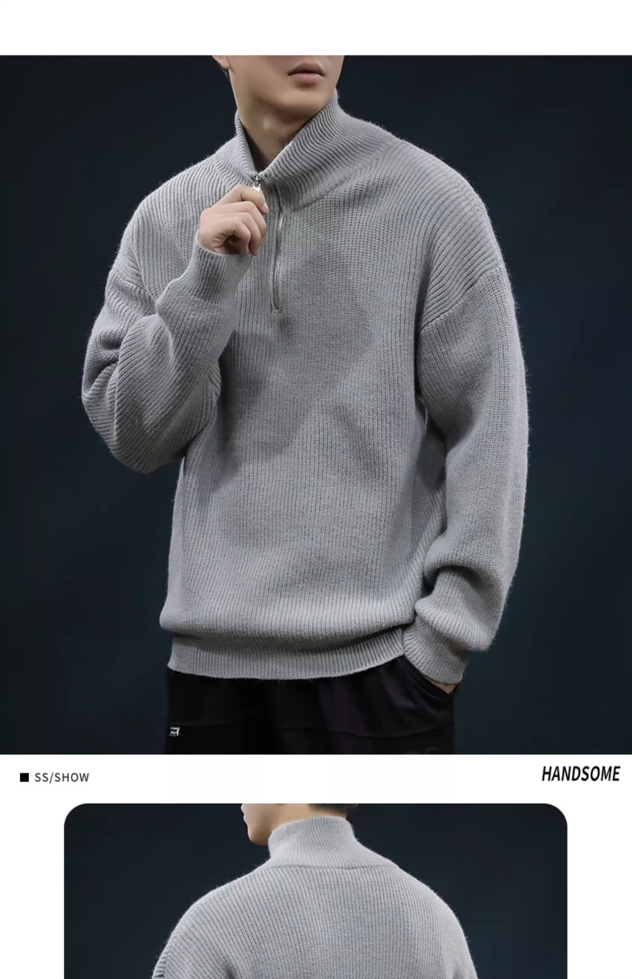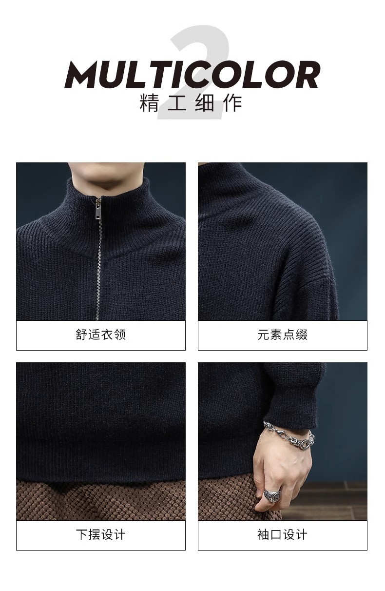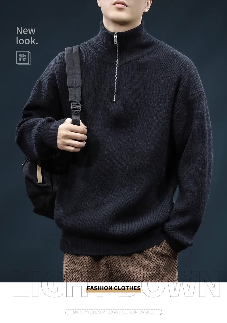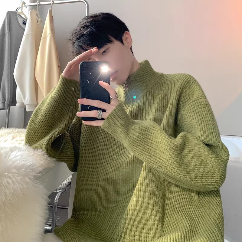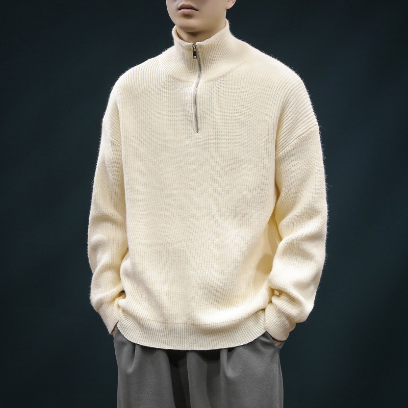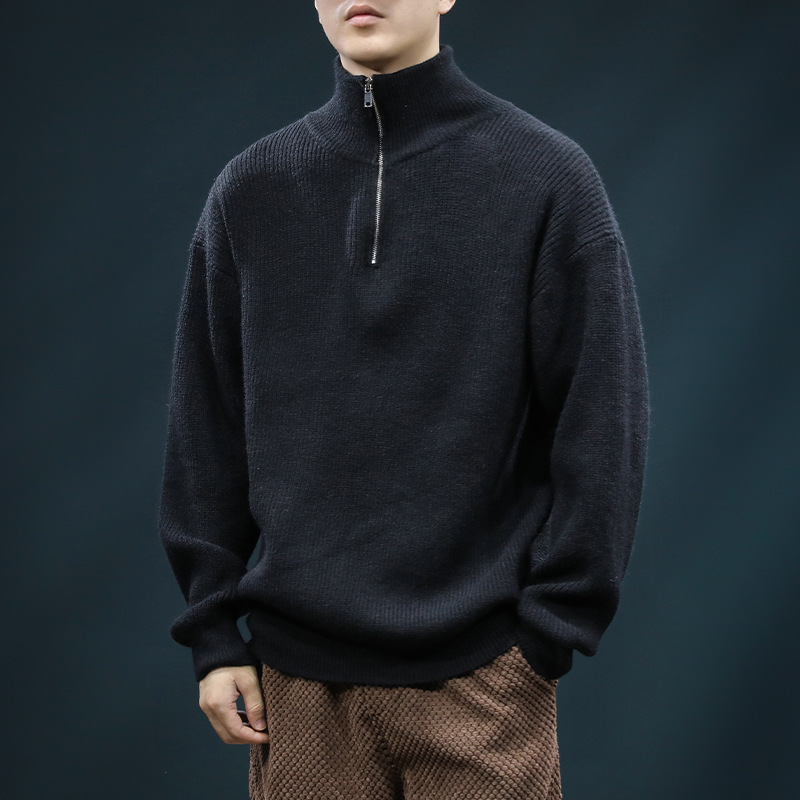 가을과 겨울 하프 Zip 카디건 스웨터 남자 한국 스타일 유행 게으른 스타일 느슨한 반 터틀넥 니트 탑 옷 유행