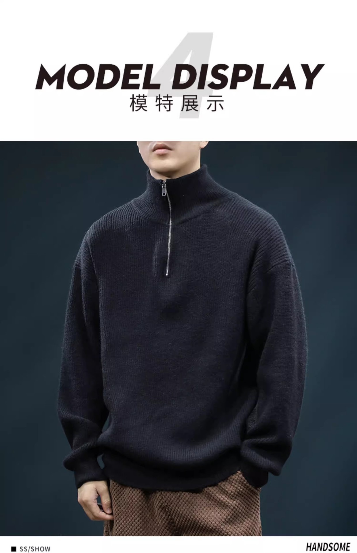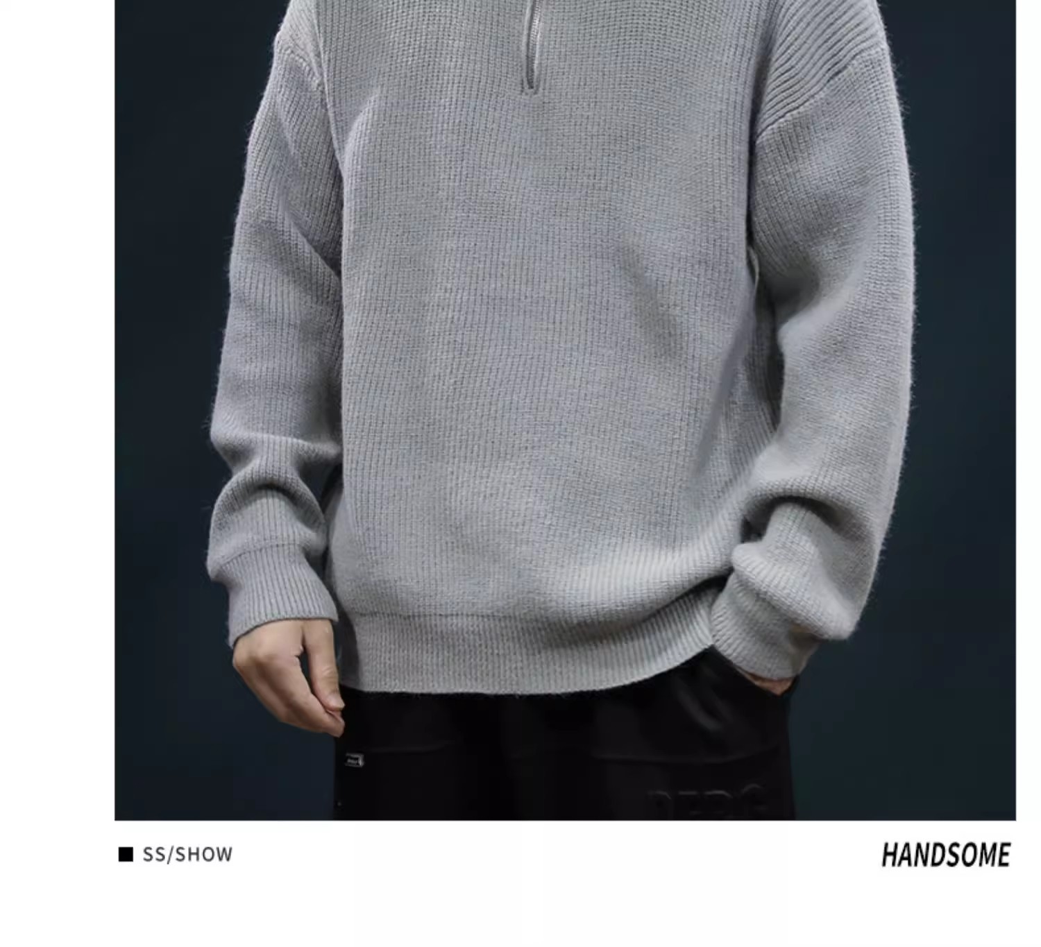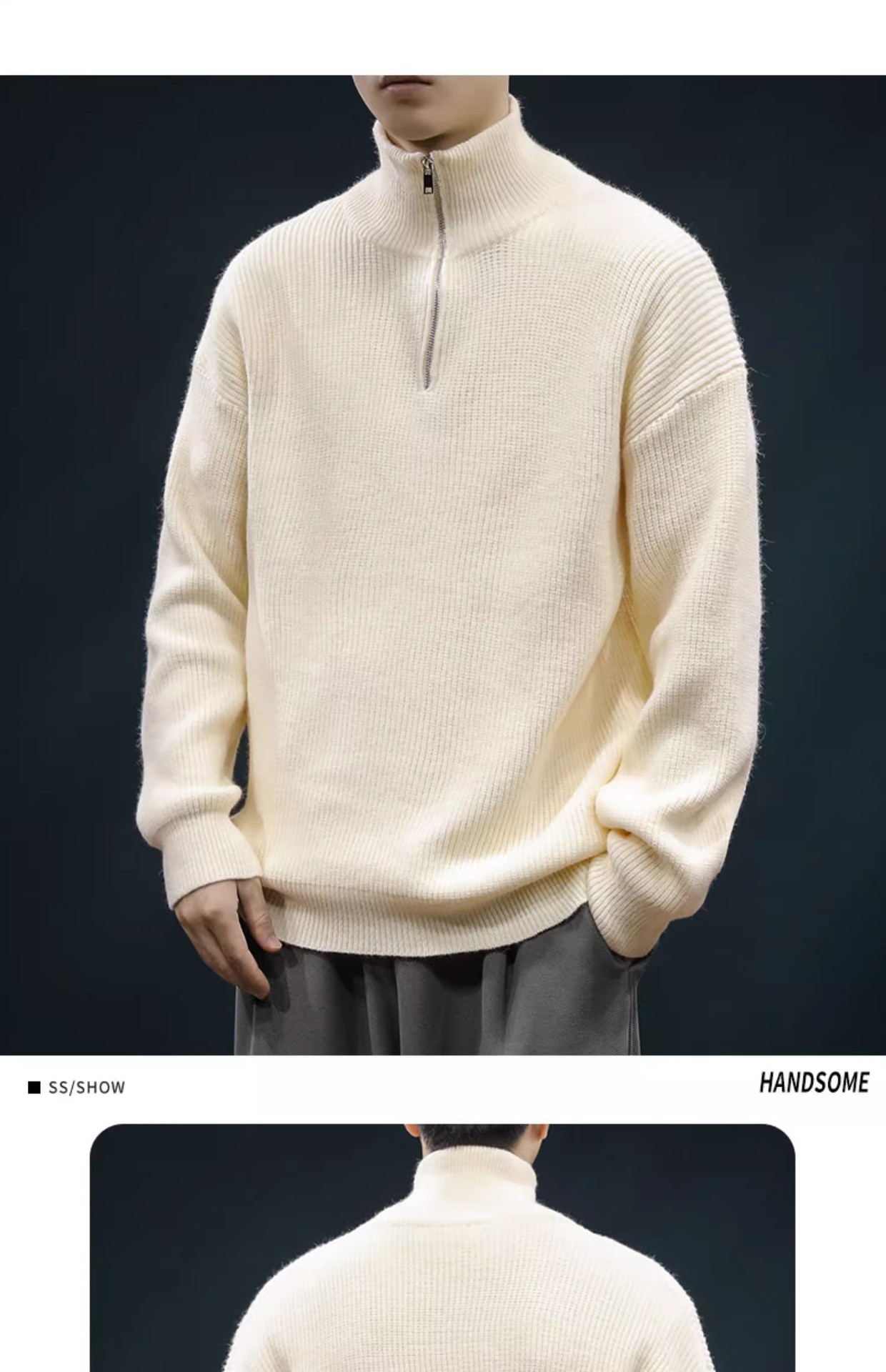 가을과 겨울 하프 Zip 카디건 스웨터 남자 한국 스타일 유행 게으른 스타일 느슨한 반 터틀넥 니트 탑 옷 유행