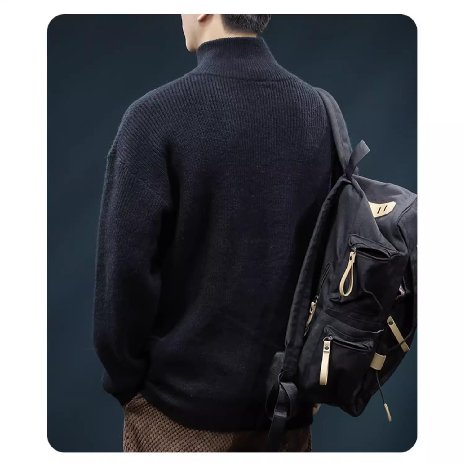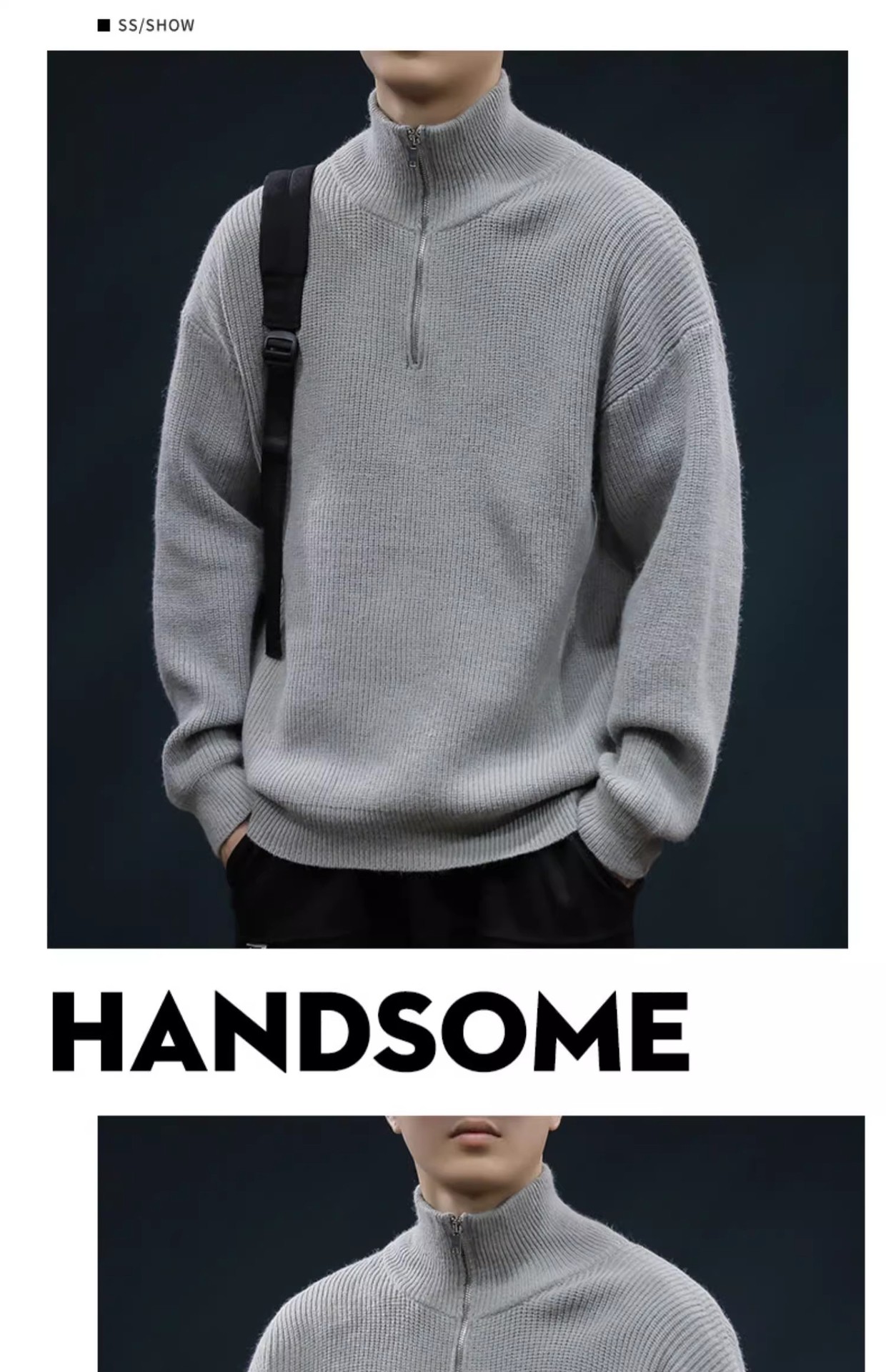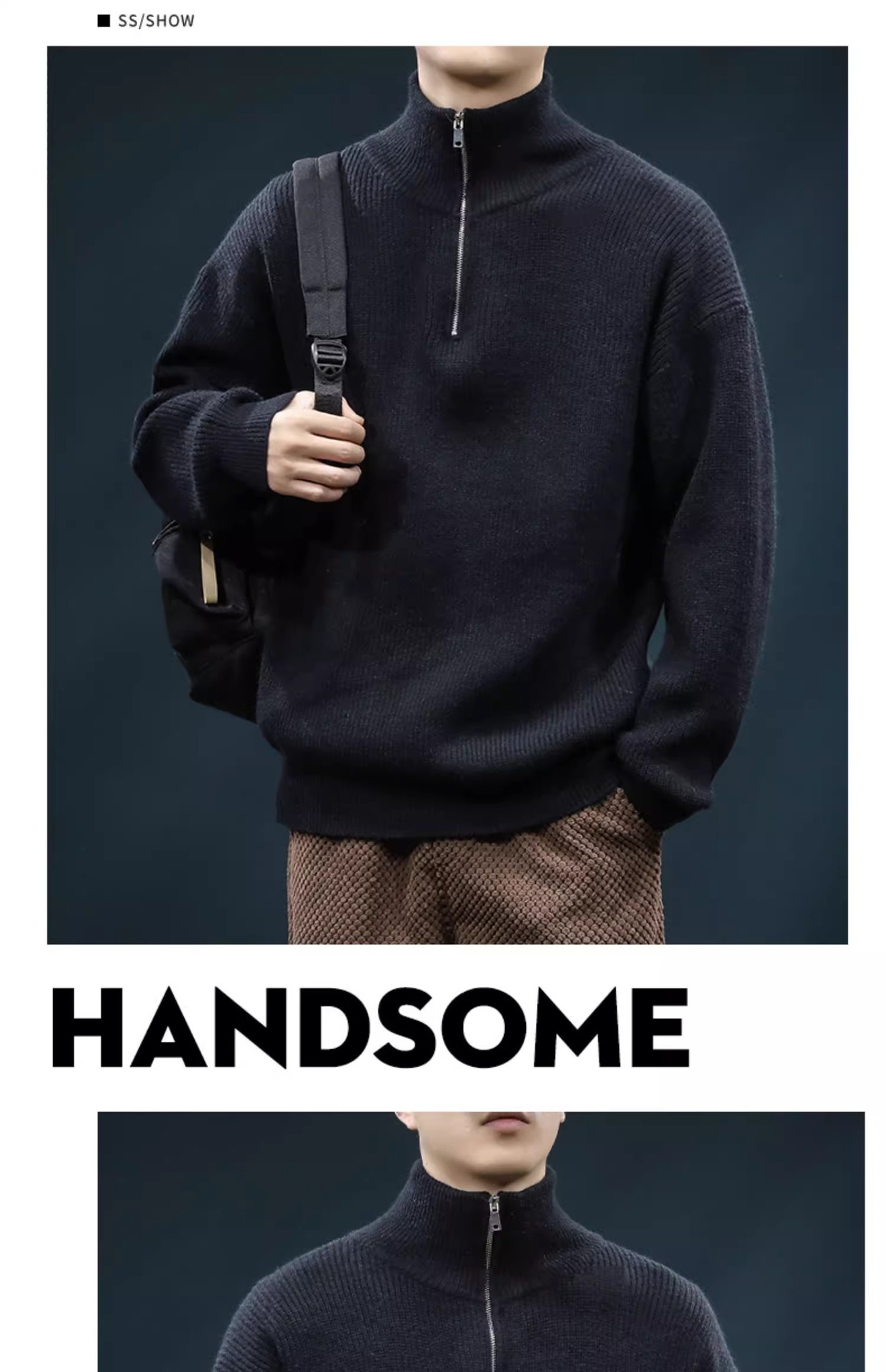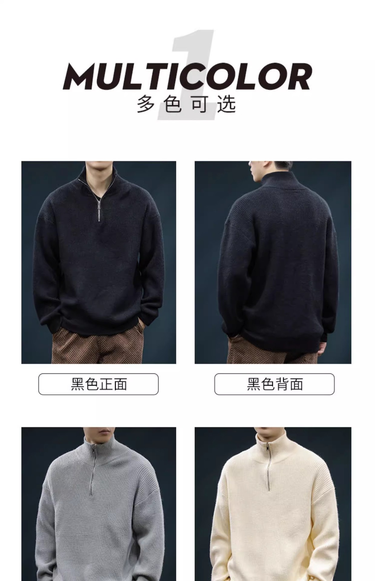 가을과 겨울 하프 Zip 카디건 스웨터 남자 한국 스타일 유행 게으른 스타일 느슨한 반 터틀넥 니트 탑 옷 유행