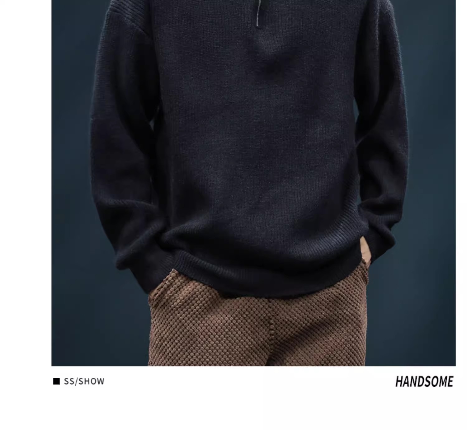 가을과 겨울 하프 Zip 카디건 스웨터 남자 한국 스타일 유행 게으른 스타일 느슨한 반 터틀넥 니트 탑 옷 유행스토어 가기
