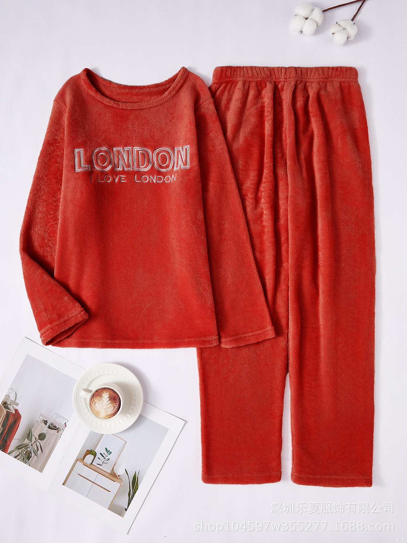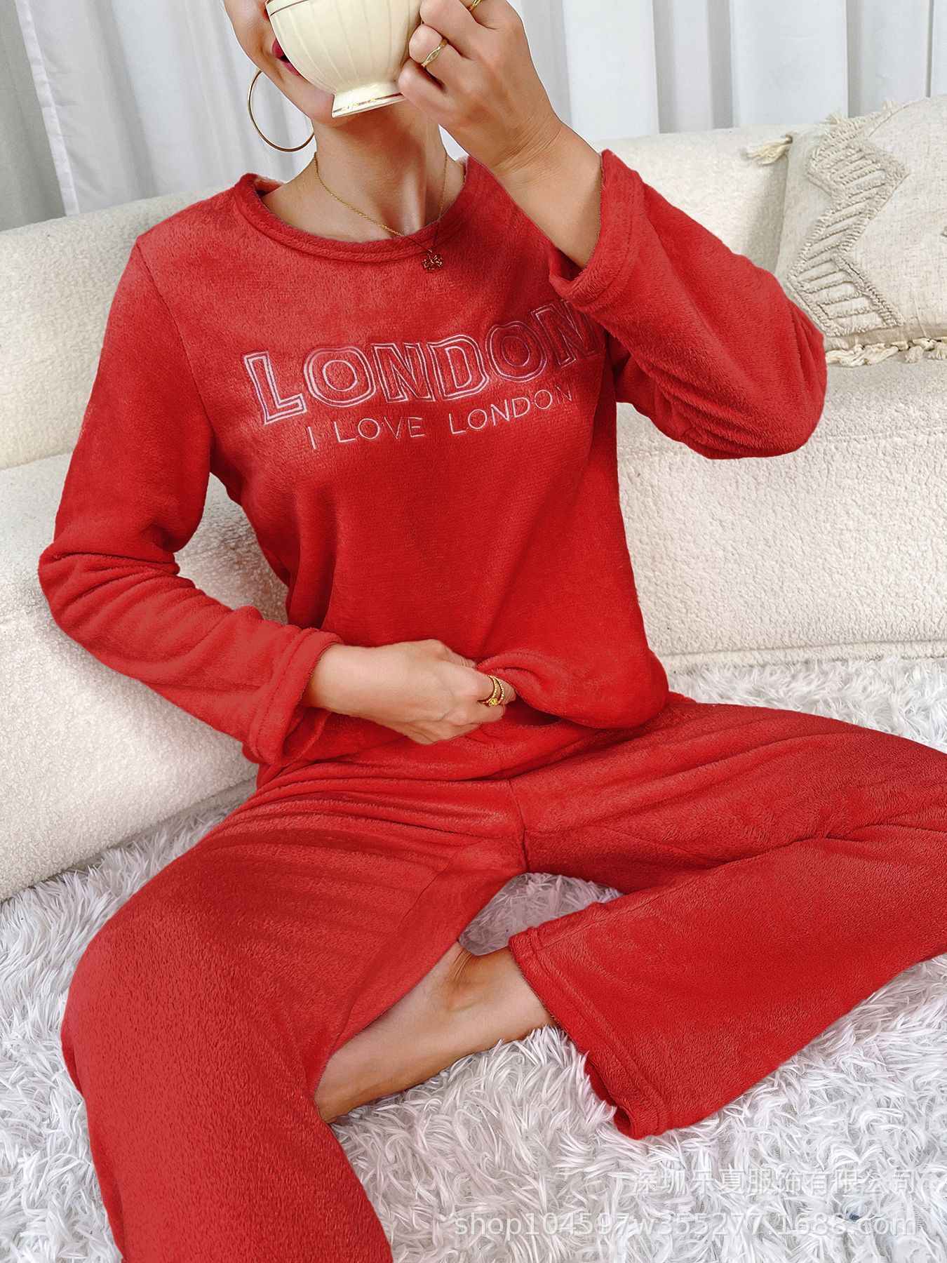 국경 간 유럽과 미국의 양털 편지 자수 파자마 여성 겨울 플란넬 파자마 가을과 겨울 여성의 따뜻한 집 옷 세트스토어 가기