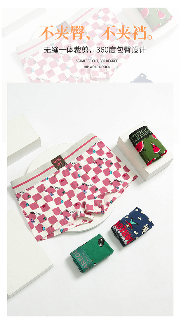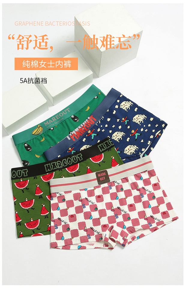 여성 속옷 코튼 잘 생긴 T 4 코너 귀여운 인쇄 플러스 사이즈 중간 허리 복서 레 트렌디 만화 항균 통기성 스포츠스토어 가기