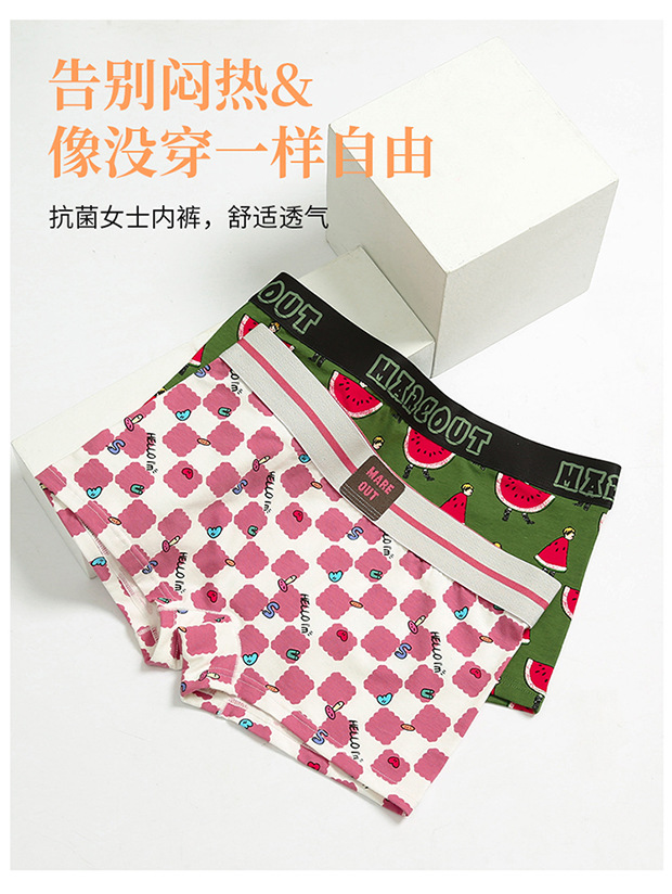여성 속옷 코튼 잘 생긴 T 4 코너 귀여운 인쇄 플러스 사이즈 중간 허리 복서 레 트렌디 만화 항균 통기성 스포츠