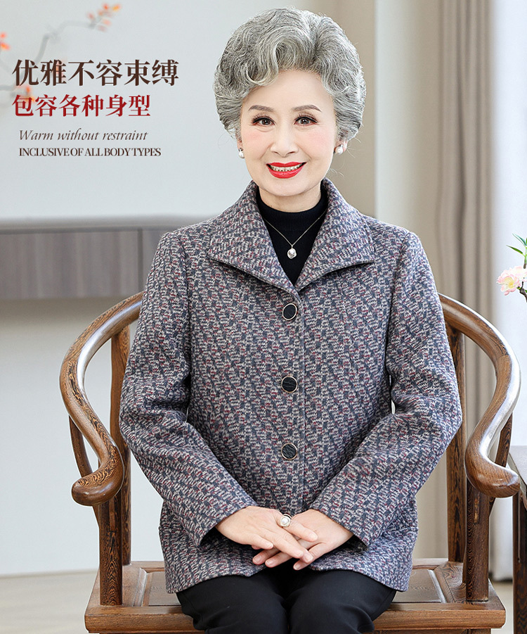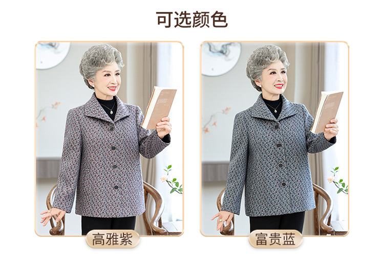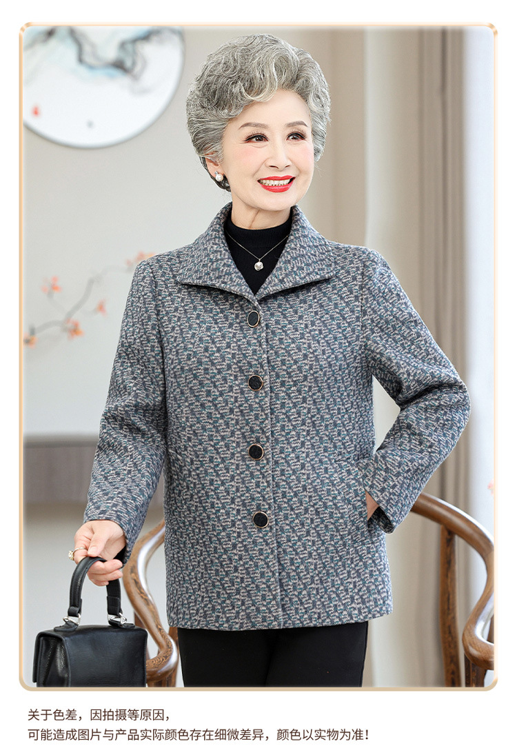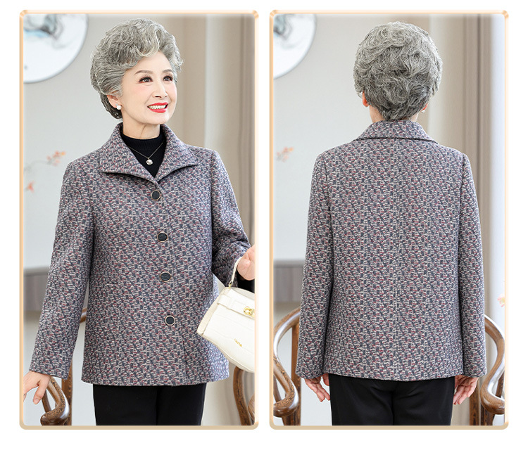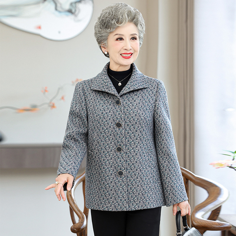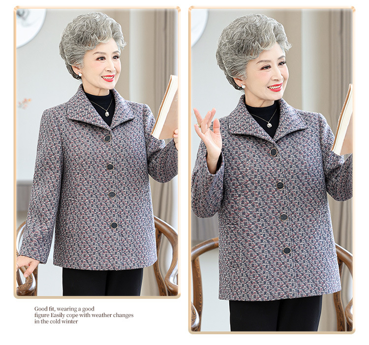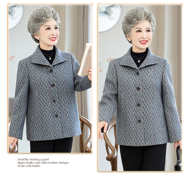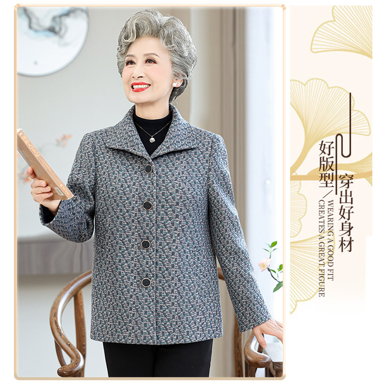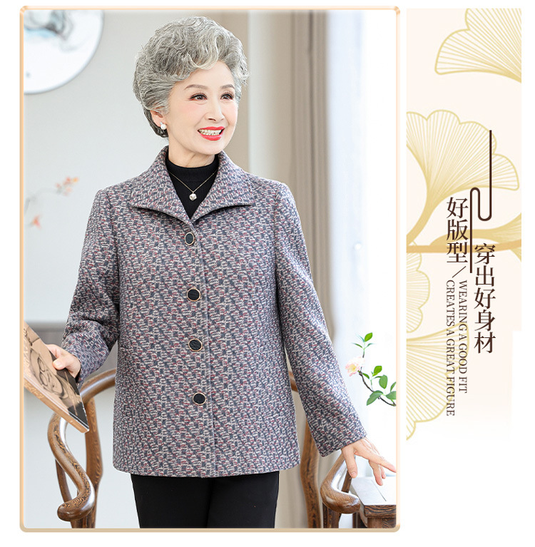 노인 여성을위한 가을 의류 2024 년 새 할머니의 가을과 겨울 모직 코트 60 세 70 세 어머니 옷스토어 가기