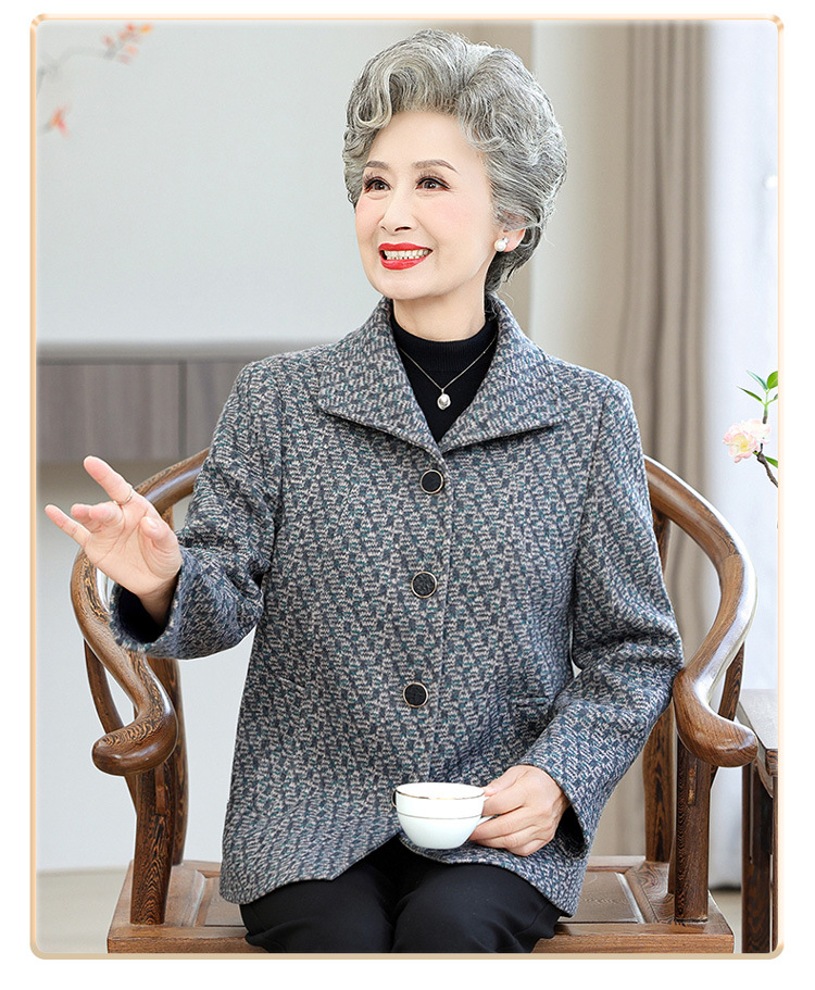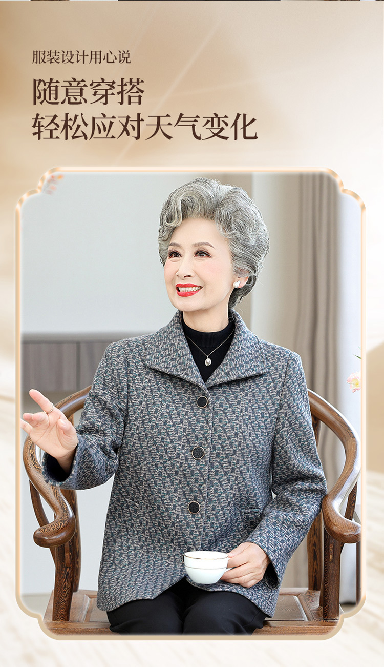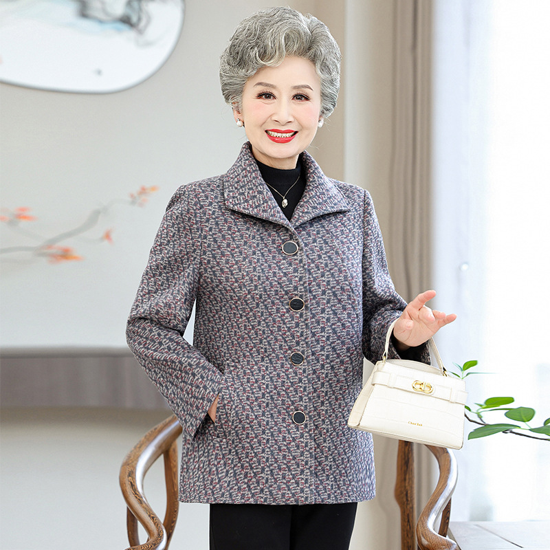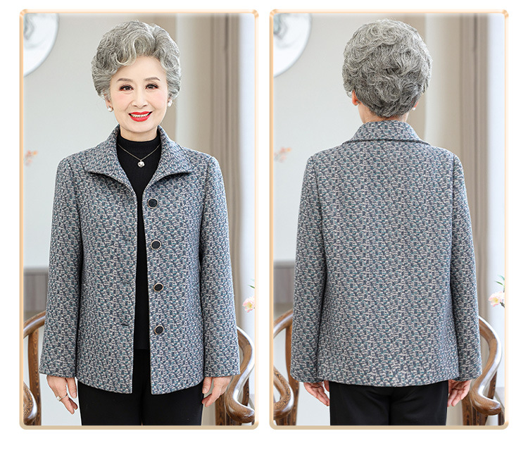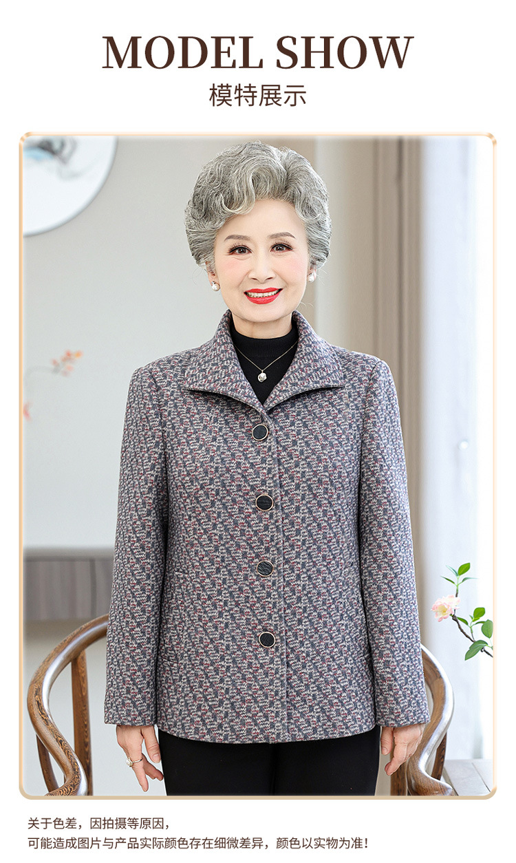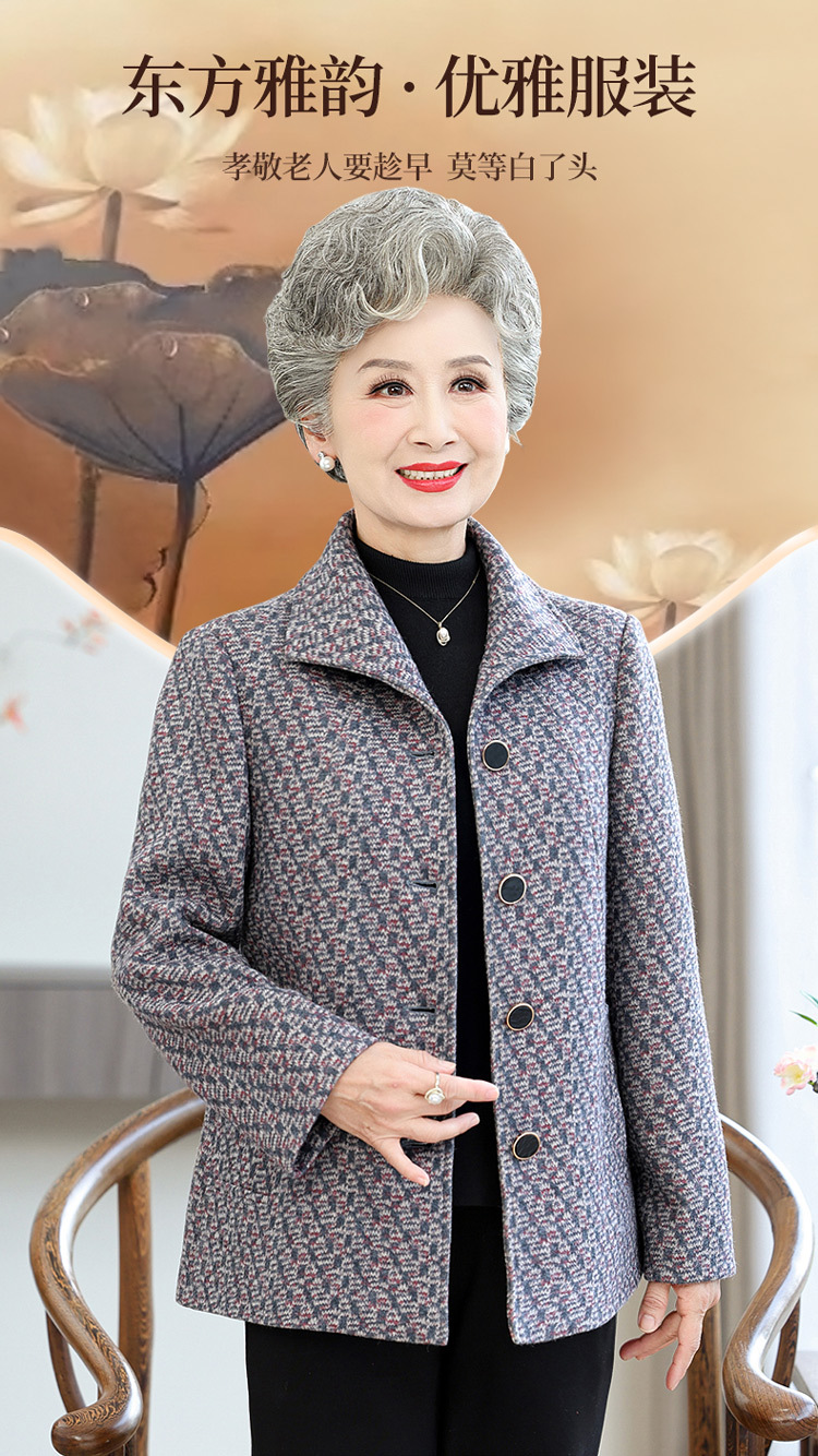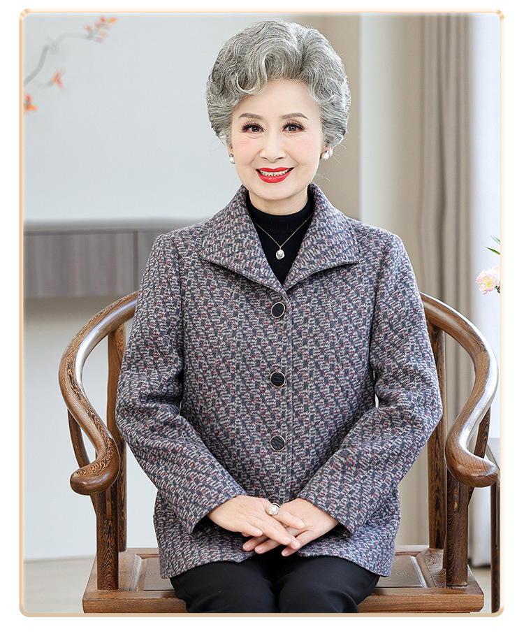 노인 여성을위한 가을 의류 2024 년 새 할머니의 가을과 겨울 모직 코트 60 세 70 세 어머니 옷스토어 가기