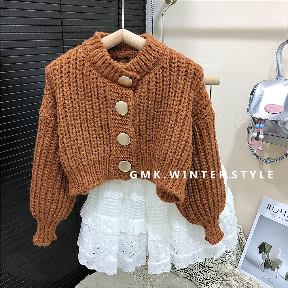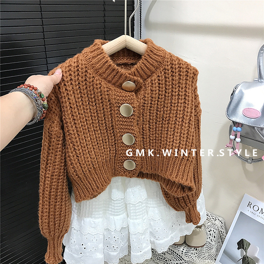 • 라지 골드 버튼 두꺼운 스웨터 재킷