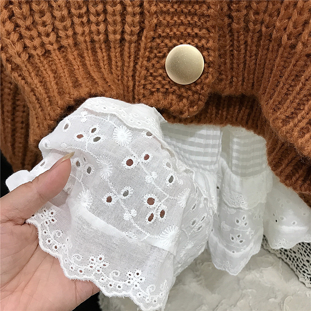 한국 아동복 봄과 가을 소녀 굵은 양모 니트 카디건 스웨터 어린이 화이트 케이크 오버스커트 투피스 세트