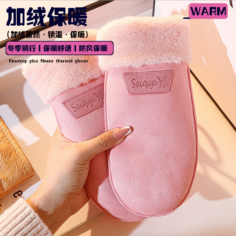 스웨이드 벨벳 여성용 겨울 방한 장갑, 방풍 및 보온 기능, 벨벳 안감, 목걸이형 장갑, 크로스보더스토어 가기