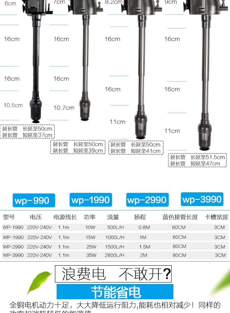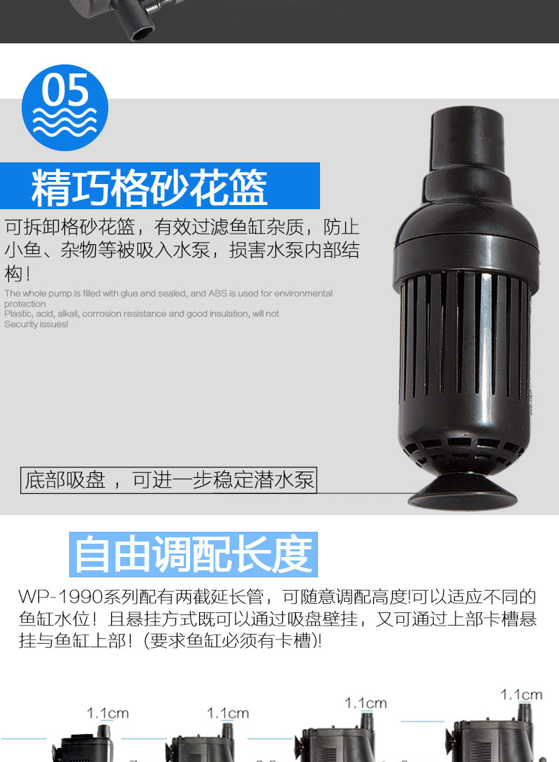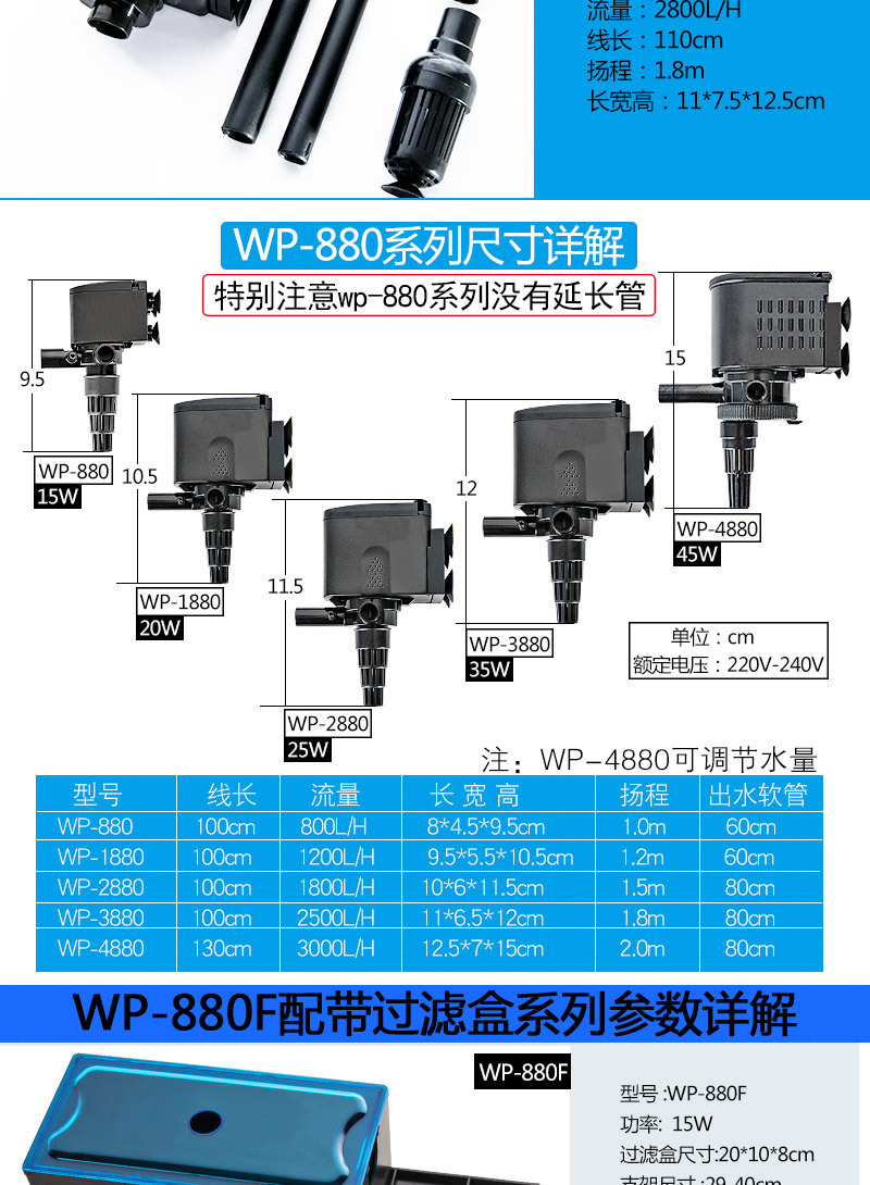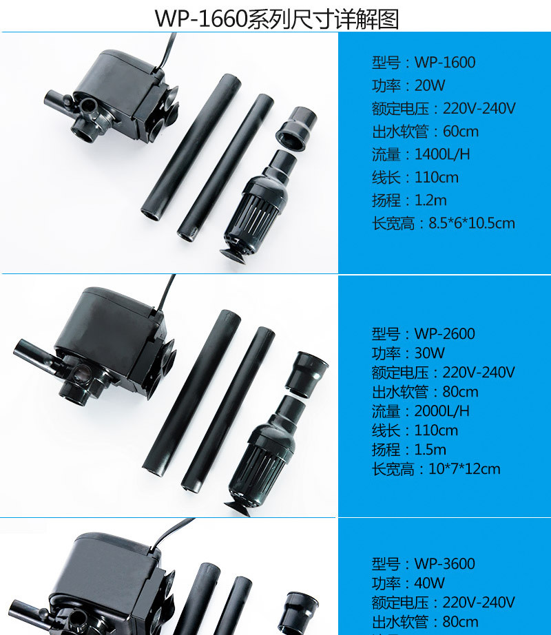 • 3-in-1 수중 펌프 짧은 튜브 WP-1880