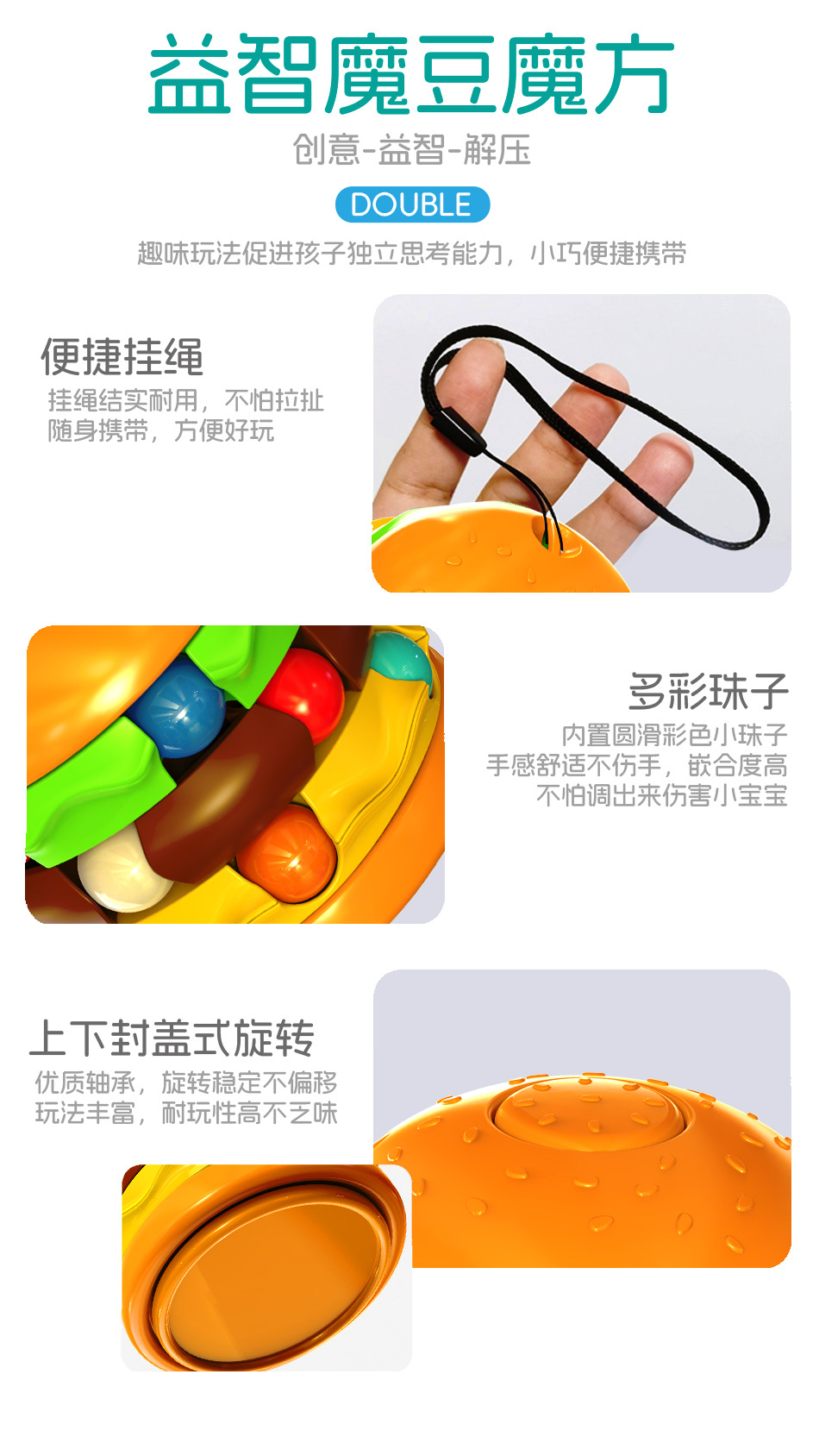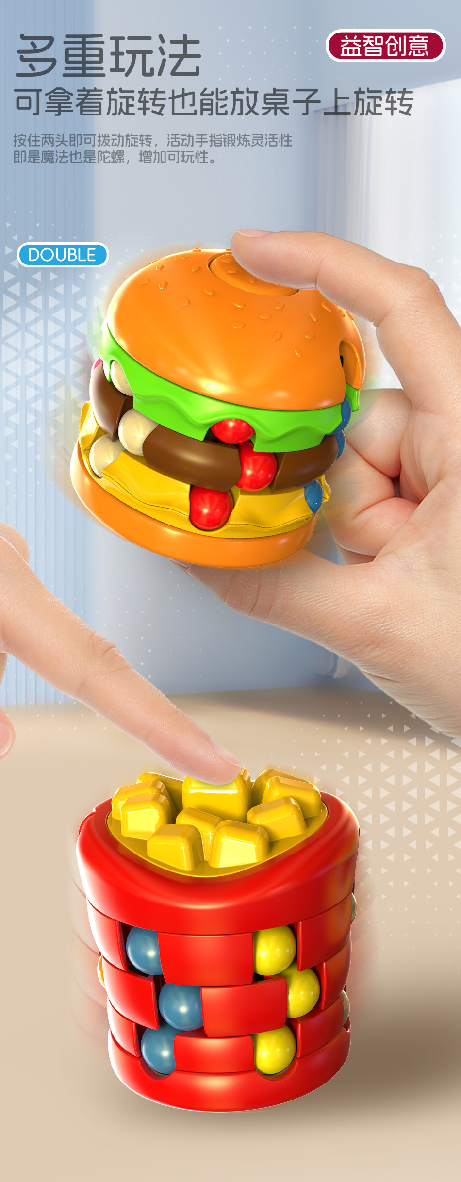 햄버거 프라이 Magic Bean Rubik's Cube 어린이 교육 완구 창조적 인 최고 변화하는 실습 논리 공간 사고