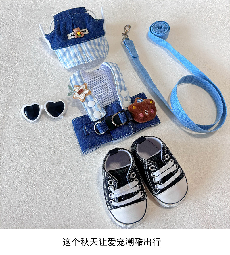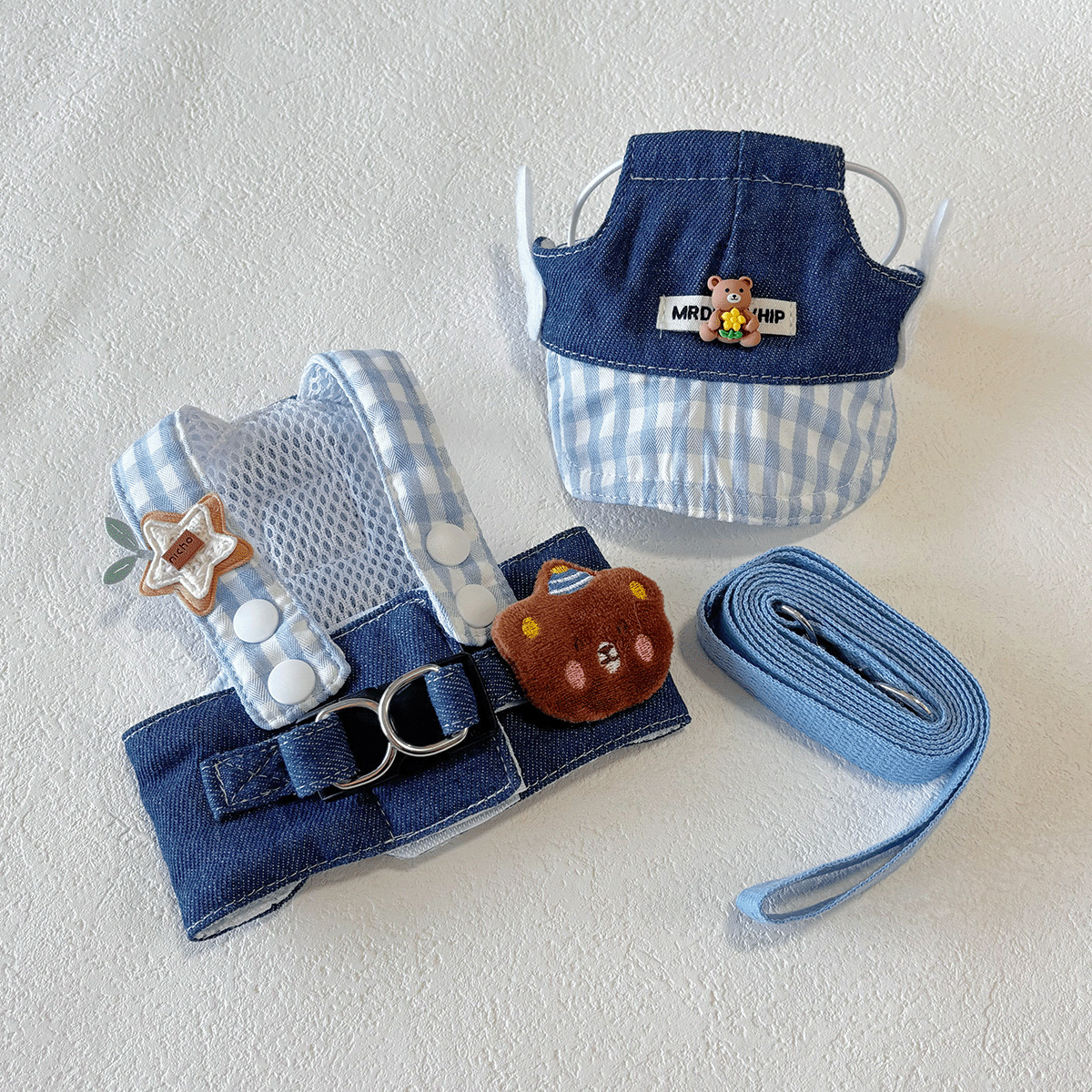 • 데님 하네스 + 로프 + 모자 [3종 세트]