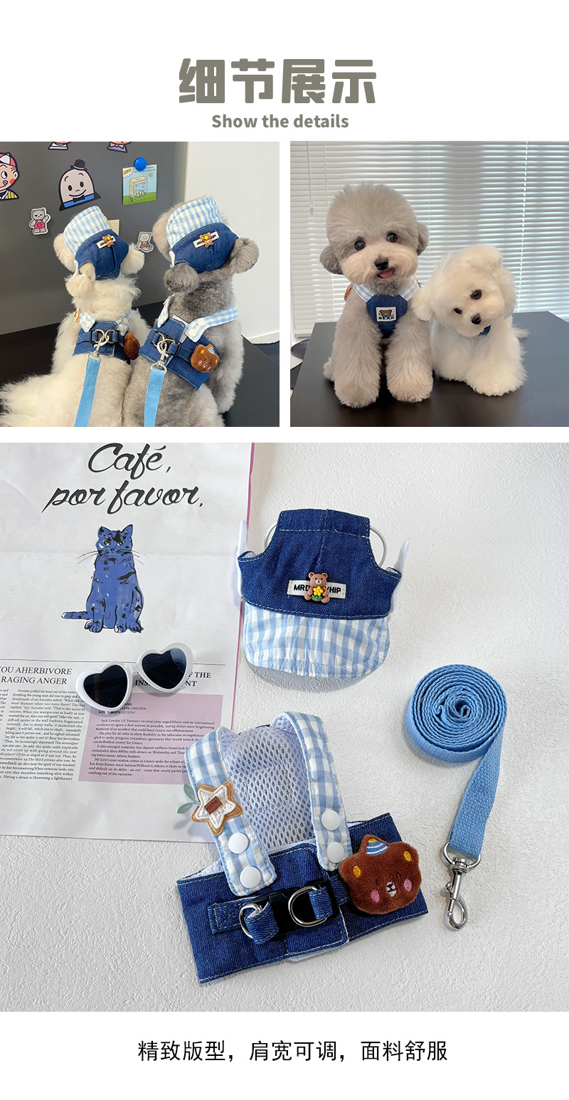 새로운 가을 의류 애완 동물 개와 고양이 애완 동물 의류 Bichon Frize VIP 요크셔 견인 조끼 데님 조끼스토어 가기