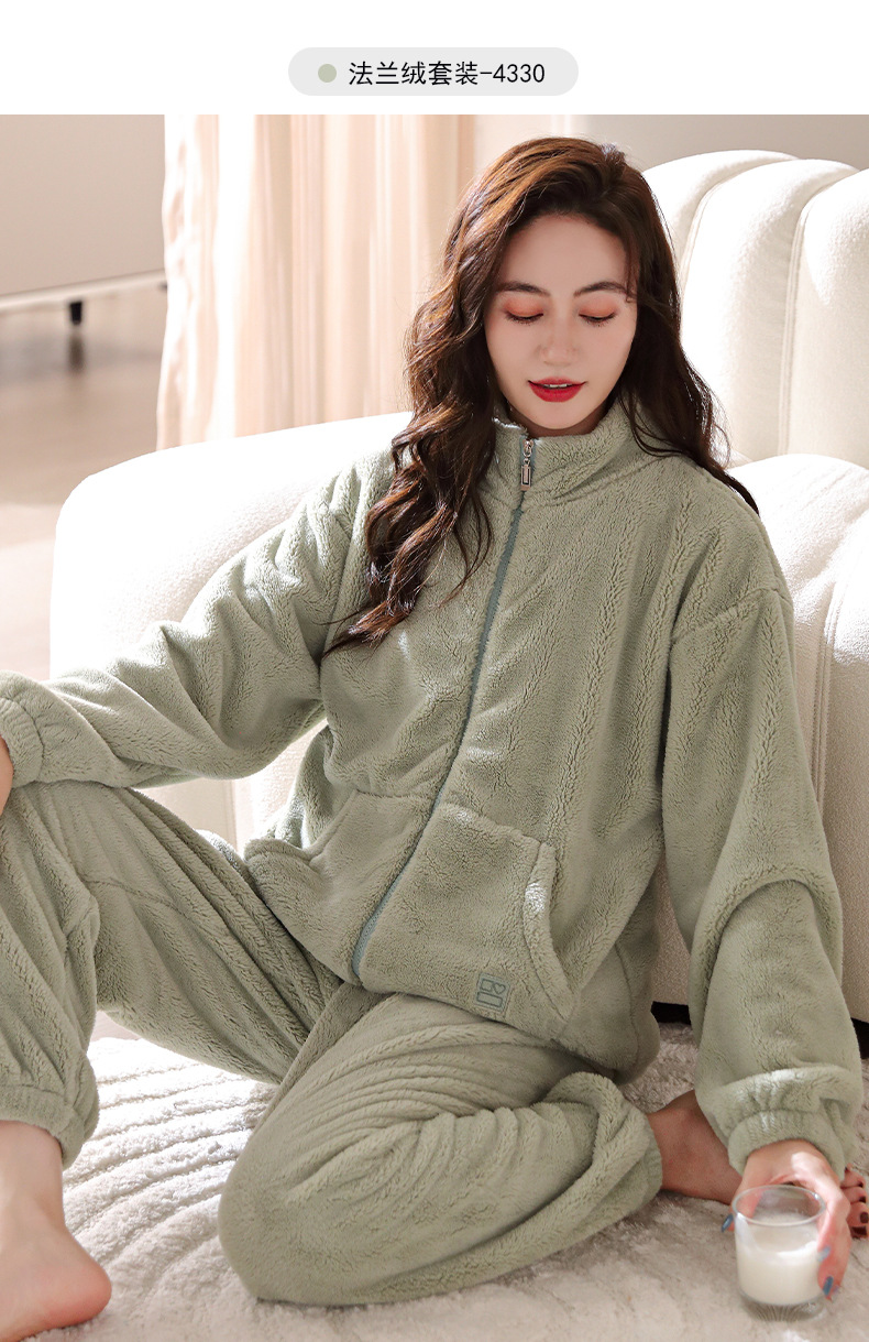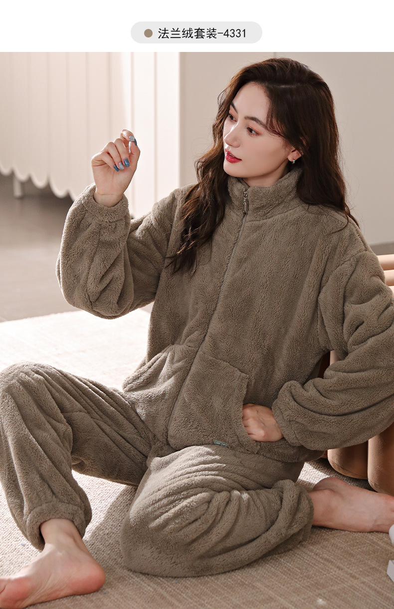 겨울 플란넬 따뜻한 잠옷 여성용 긴팔 바지 지퍼 홈 옷 간단한 캐주얼 여성 투피스 세트스토어 가기