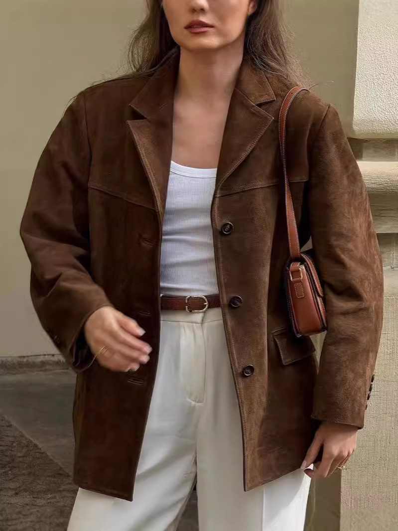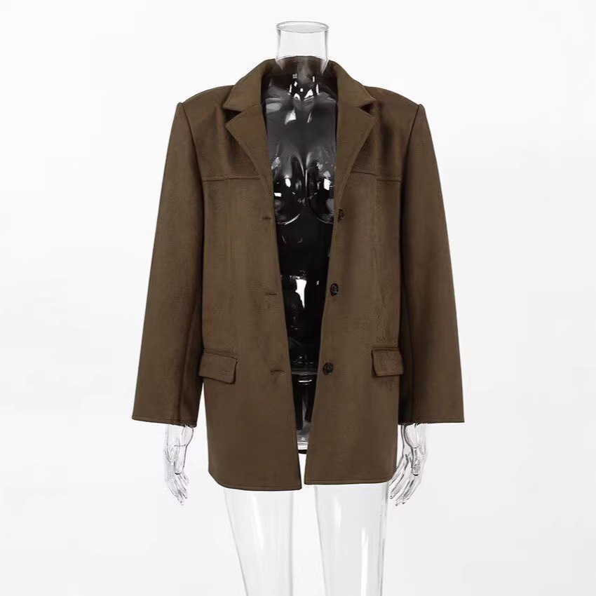 미국 스타일 가을 겨울 레트로 파일럿 재킷 스웨이드 라펠 루즈핏 카디건 블레이저 여성복 해외배송