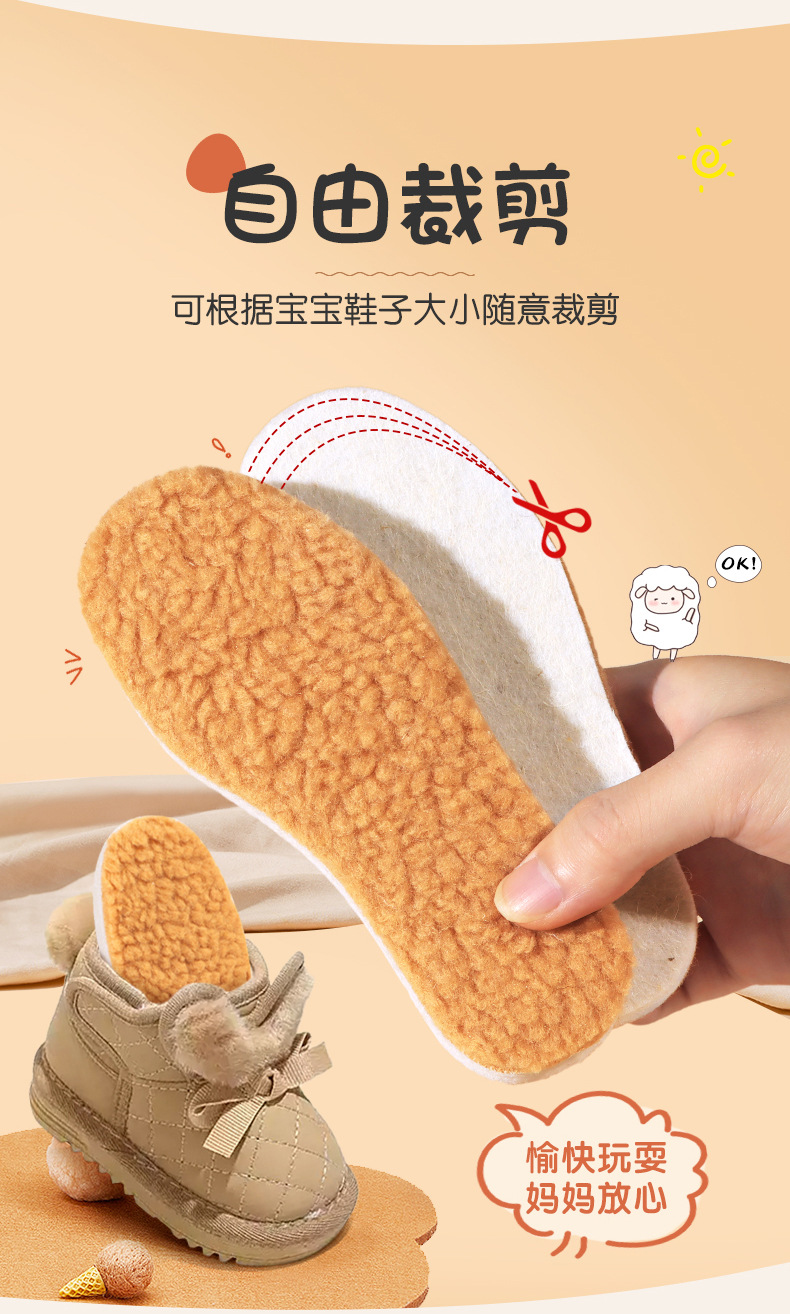 어린이 착용 가능한 따뜻한 깔창 양모 기모 두꺼운 아기 소년과 소녀 부드러운 어린이 통기성 겨울 땀 흡수