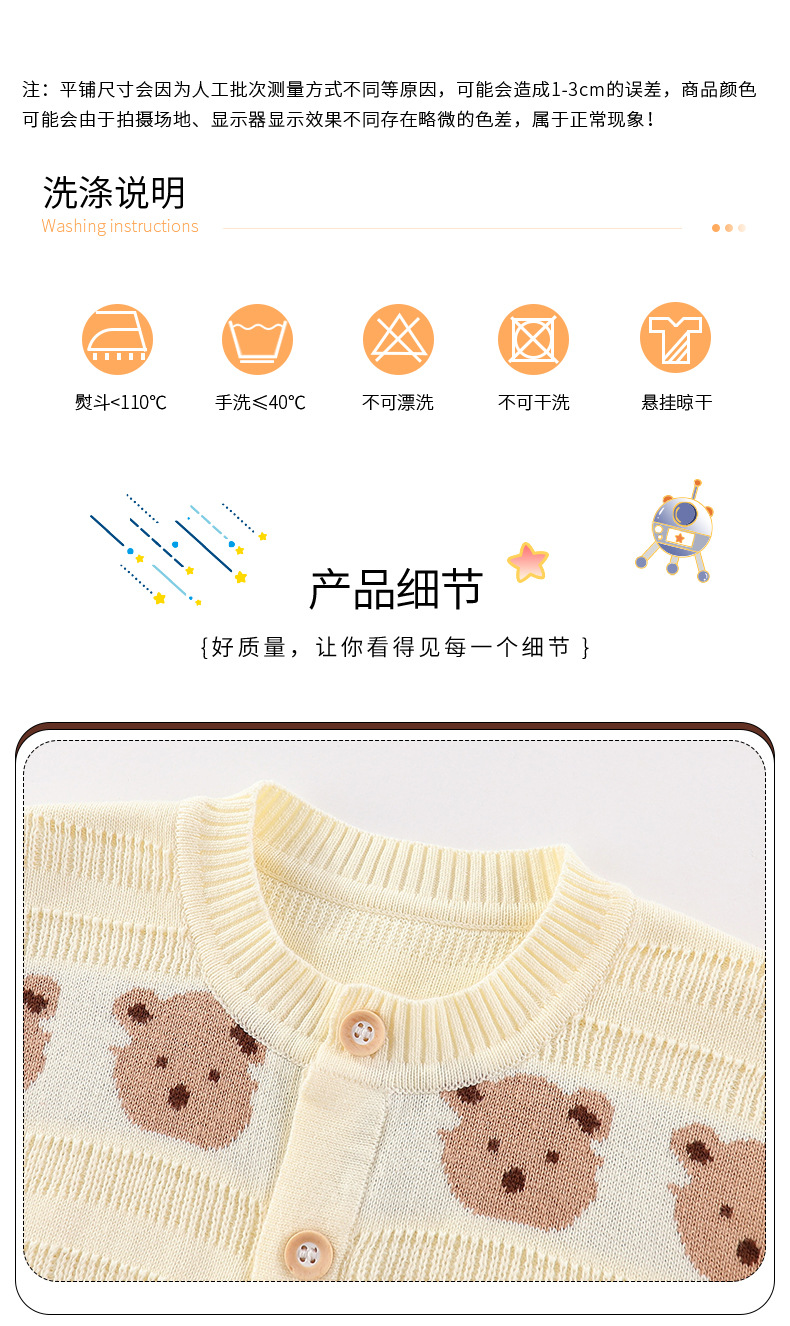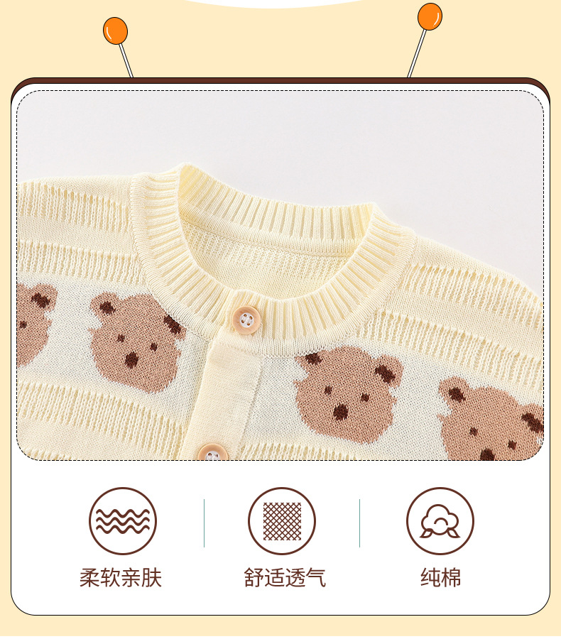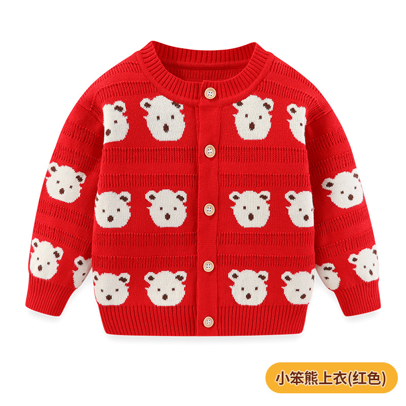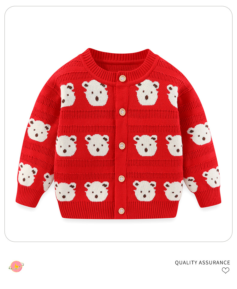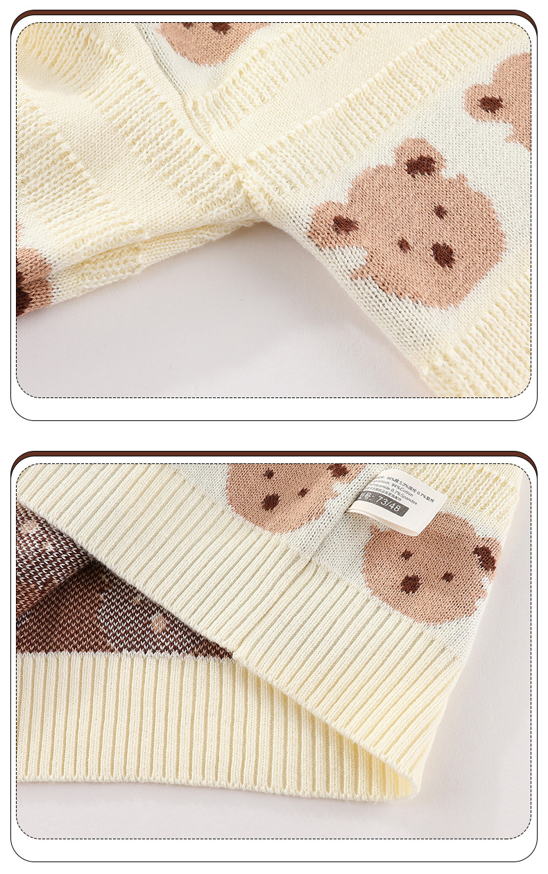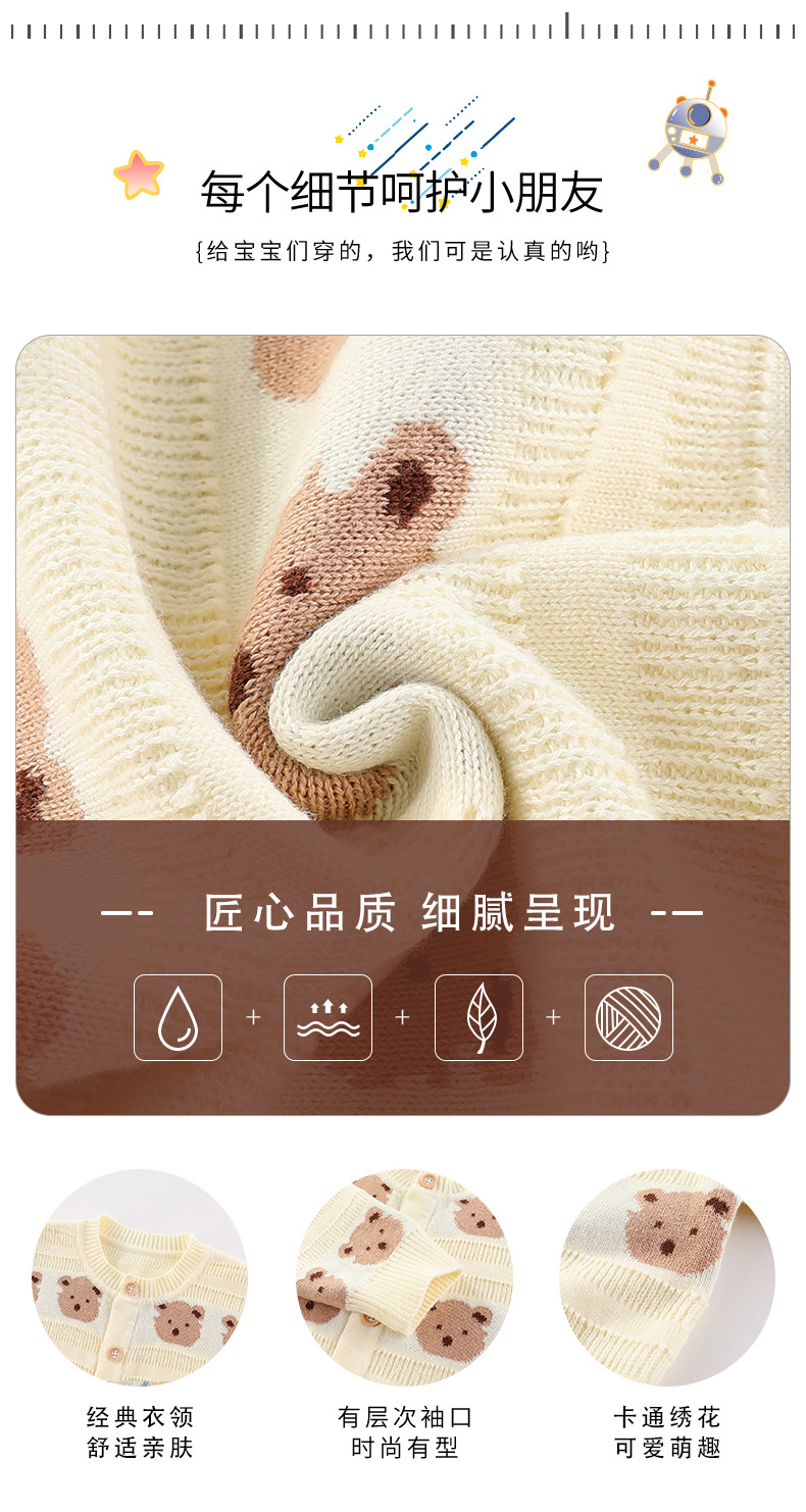 2024 봄과 가을 새로운 아기 스웨터 아기 니트 카디건 울 탑 아기 곰 자수 아동복