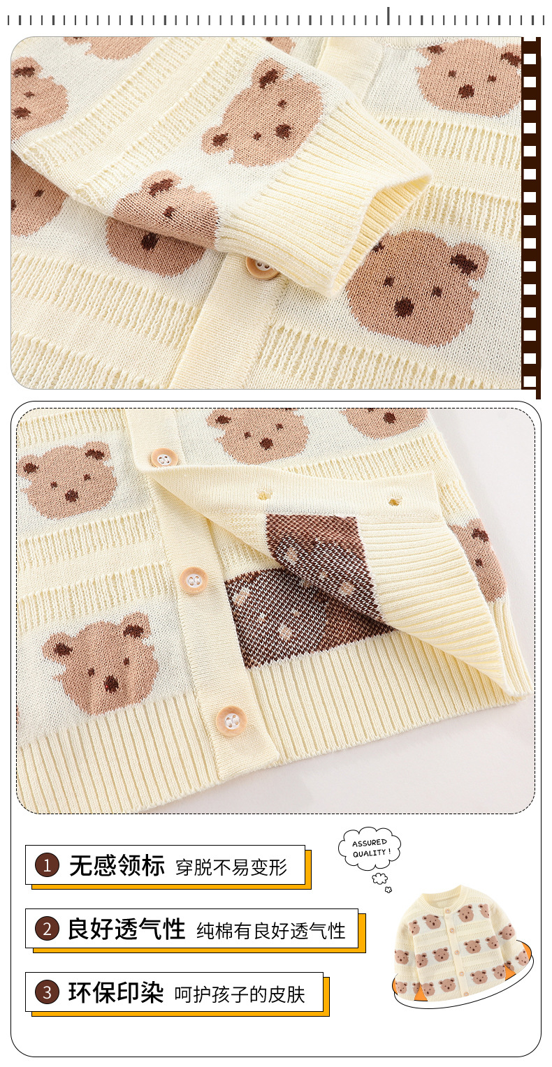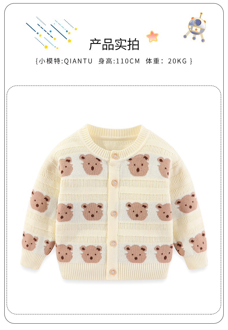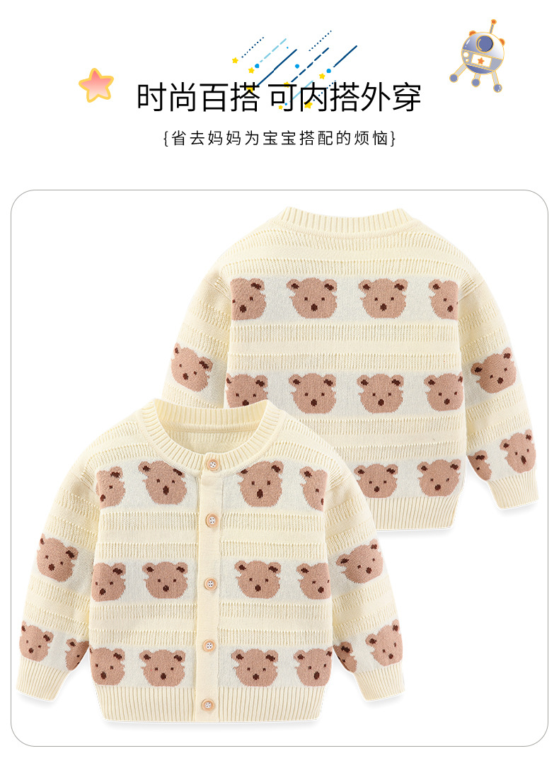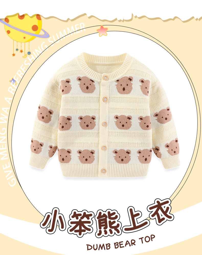 2024 봄과 가을 새로운 아기 스웨터 아기 니트 카디건 울 탑 아기 곰 자수 아동복스토어 가기