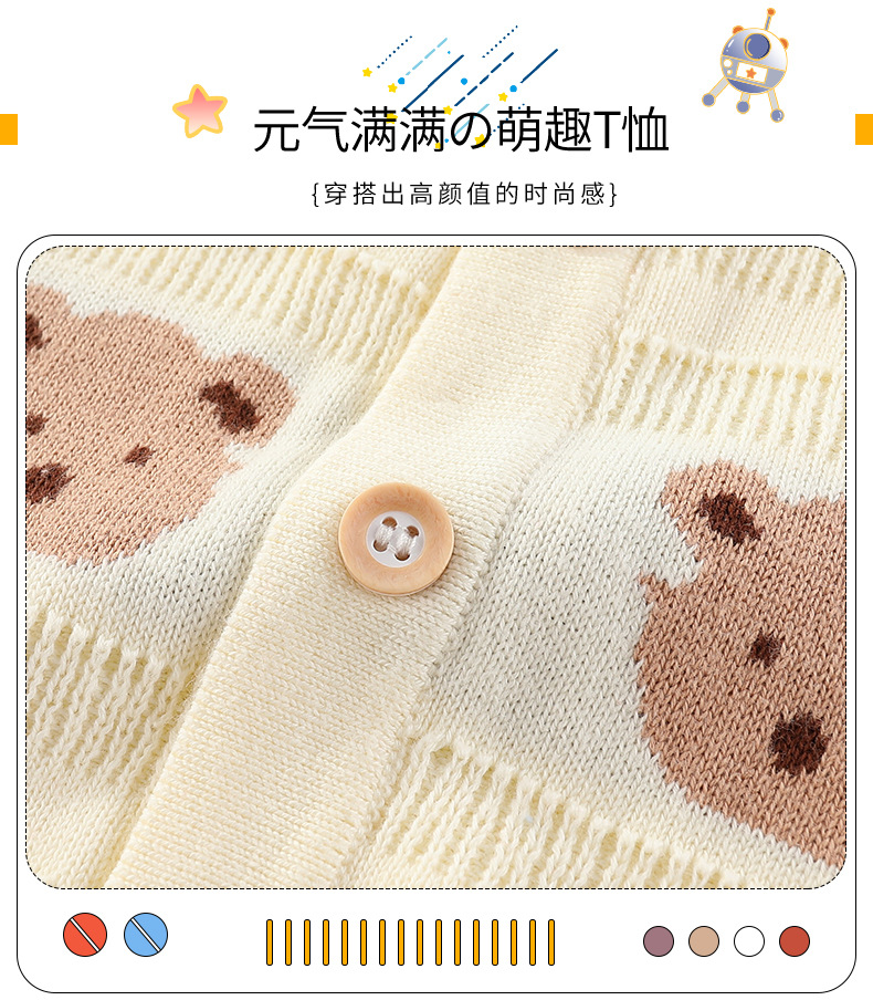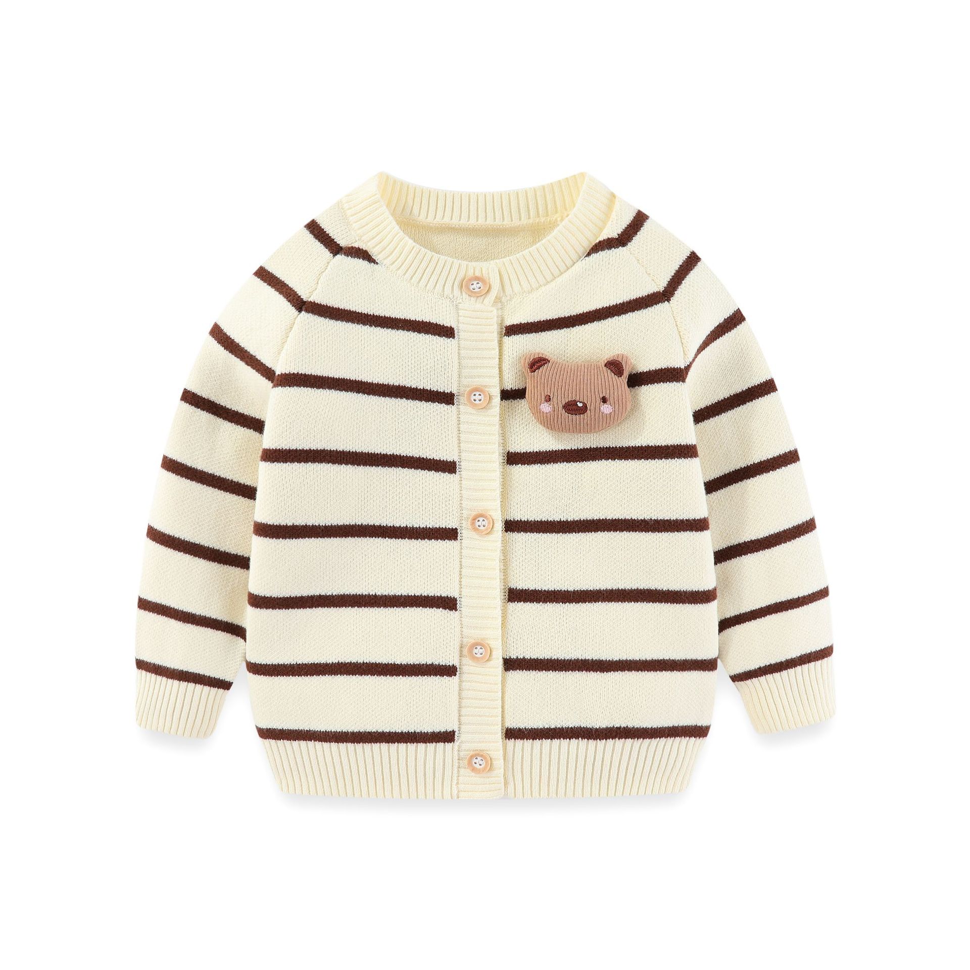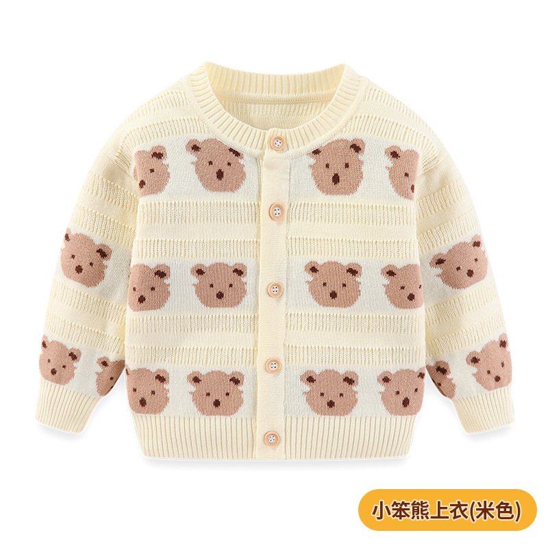 2024 봄과 가을 새로운 아기 스웨터 아기 니트 카디건 울 탑 아기 곰 자수 아동복스토어 가기