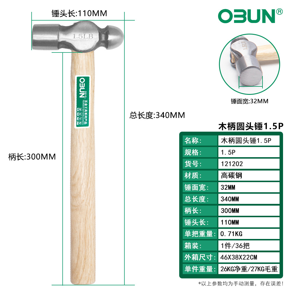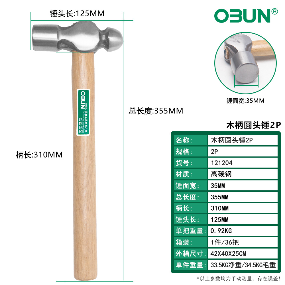 Oubang 도구 둥근 망치 나무 손잡이 망치 목수 설치 망치 홈 타악기 해머 0.5-3p 높은 탄소 강철스토어 가기